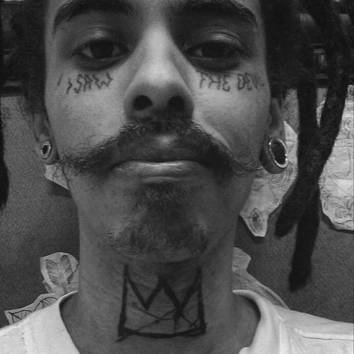 Basquiat is Coming Add on Instagram @thedarksideoftheghetto #tattoo #tatted #ignorantstyle #ignorantart #samo #basquiat #facetattoos #facetattoo #necktattoo #neck #mustache #horror #brazil #newyork