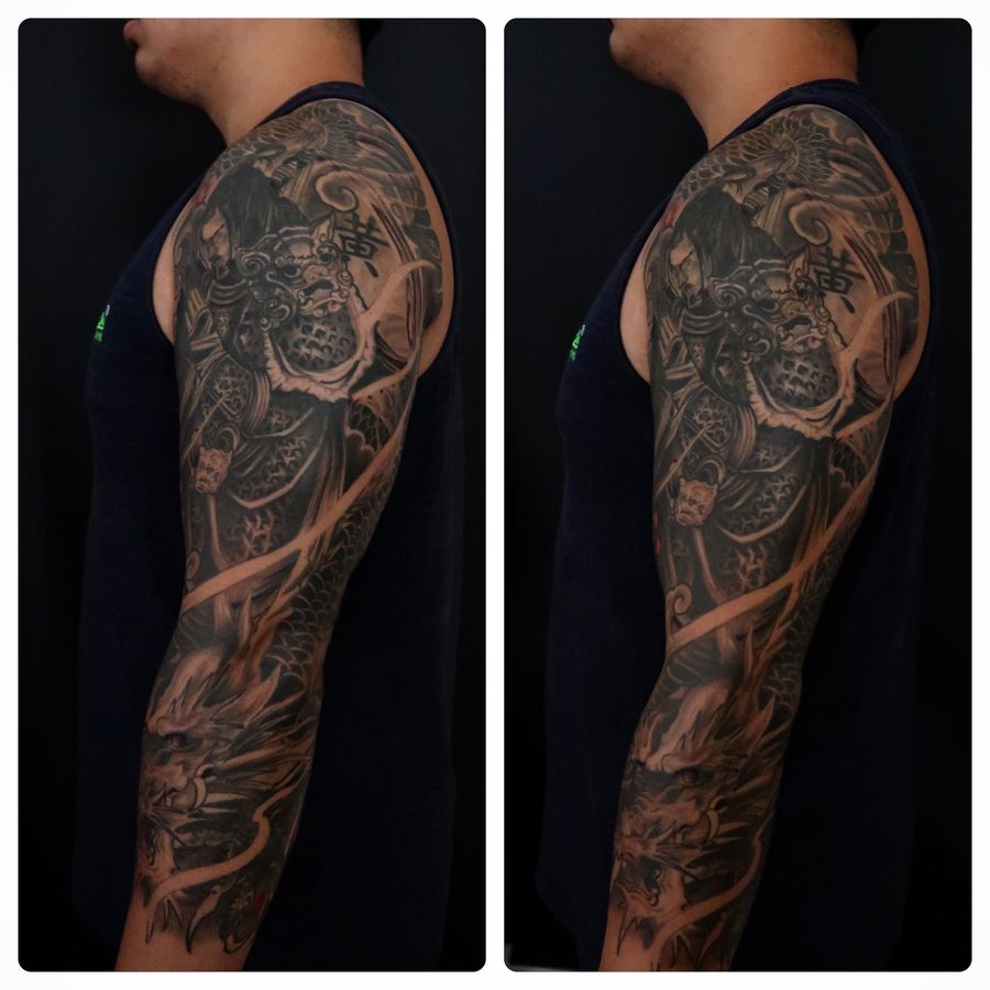 Black and grey Chinese warrior sleeve #tattoo #leeds #chinesetattoo #tattooart