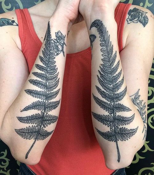 Ferns #armtattoo #ferntattoo #floraltattoos #blackandgrey