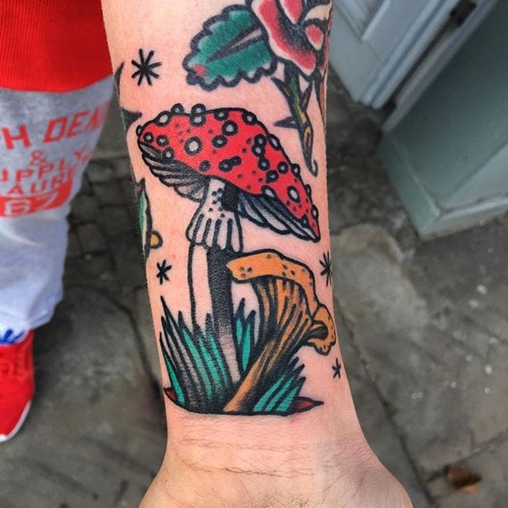 Mushroom Tattoo by @castorraubadler #traditional #traditionalmushroom #mushroom #mushroomtattoo #mushroomtattoos #fungi #fungitattoo #fungitattoos #mushroomdesigns #castorraubadler