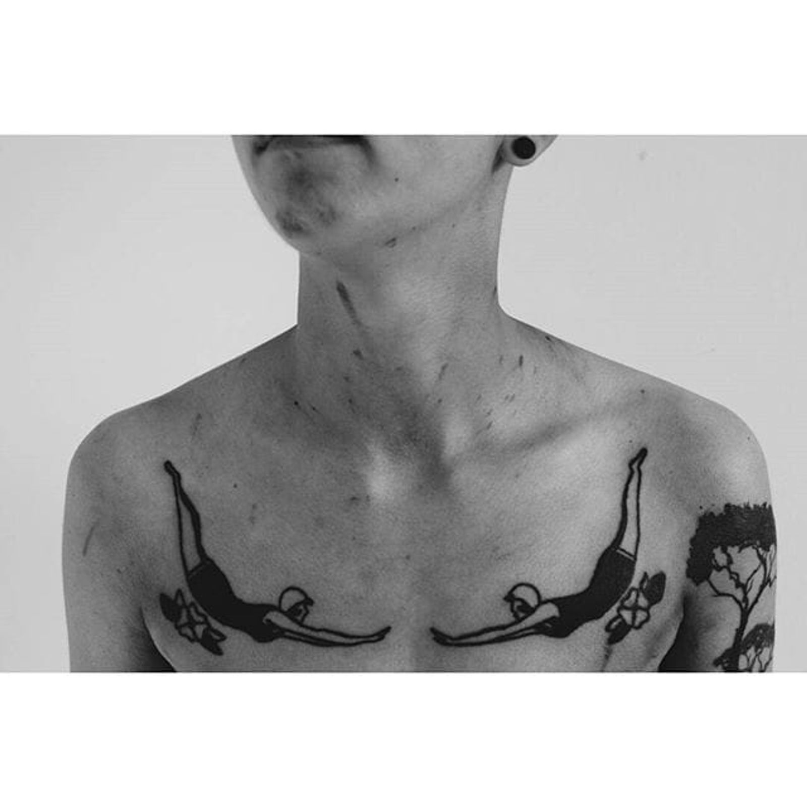 Swimmer tattoo by Superbohater Tattooer. #blackwork #swimmer #swimmer #swimming #swim #weightlifter #olympian #sports #olympics