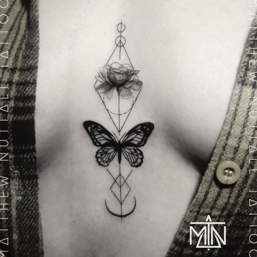 Fine line butterfly tattoo. Designed by Matthew Nuttall. #butterfly #flower #linework #matthewnuttall
