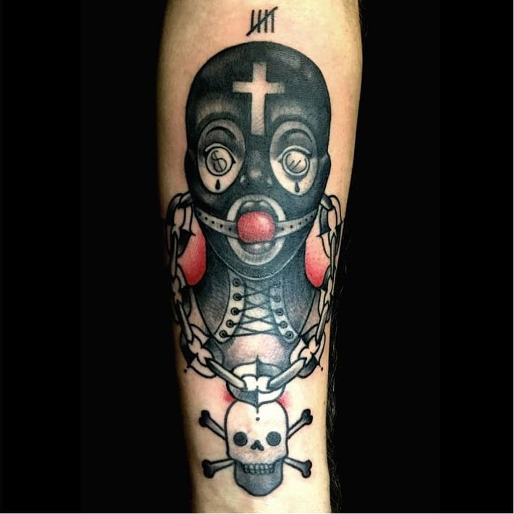 Bondage tattoo by Victor Kludge #VictorKludge #traditional #surrealistic #bondage #skull
