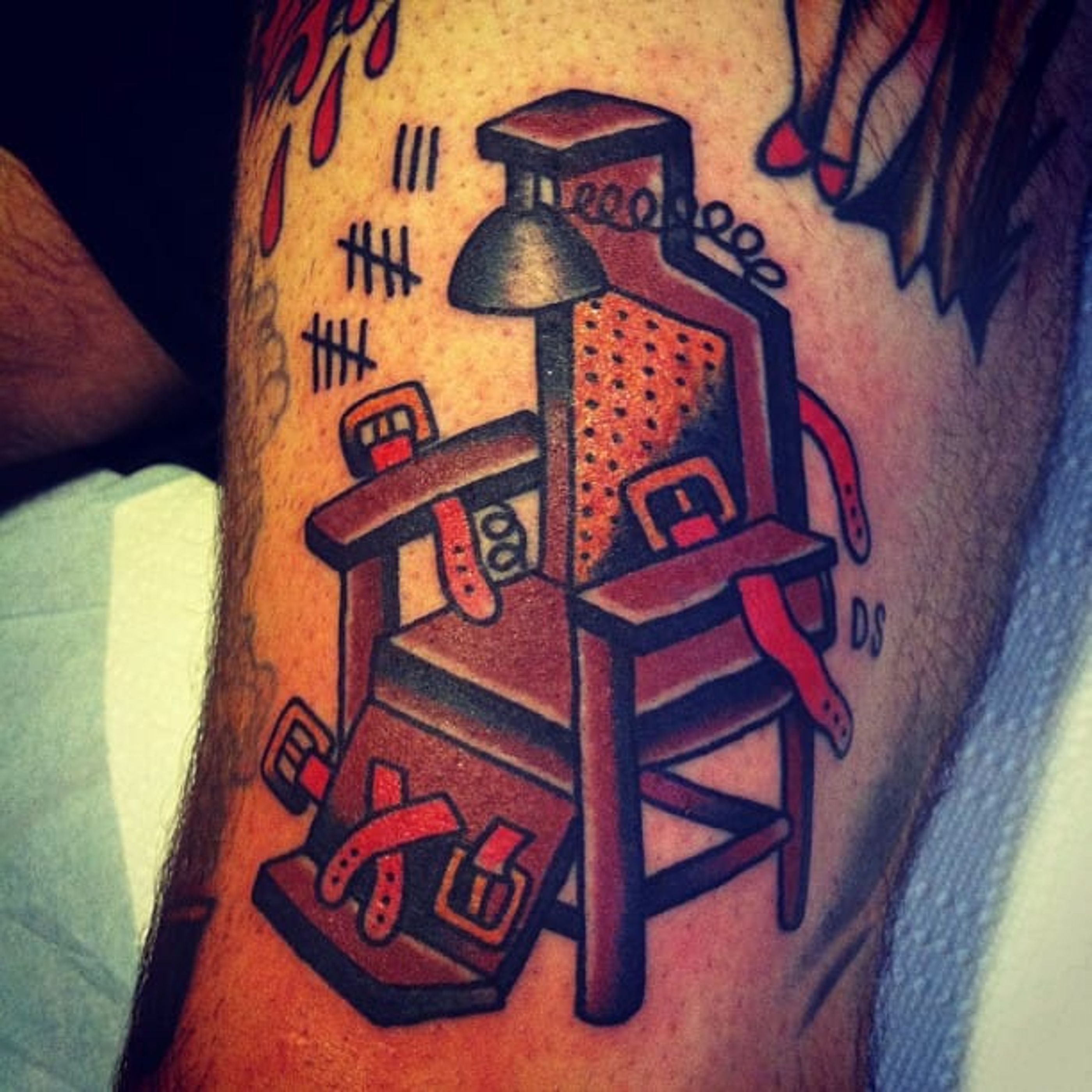 Electric Chair Tattoo by Dan Santoro #electricchair #chair #execution #DanSantoro