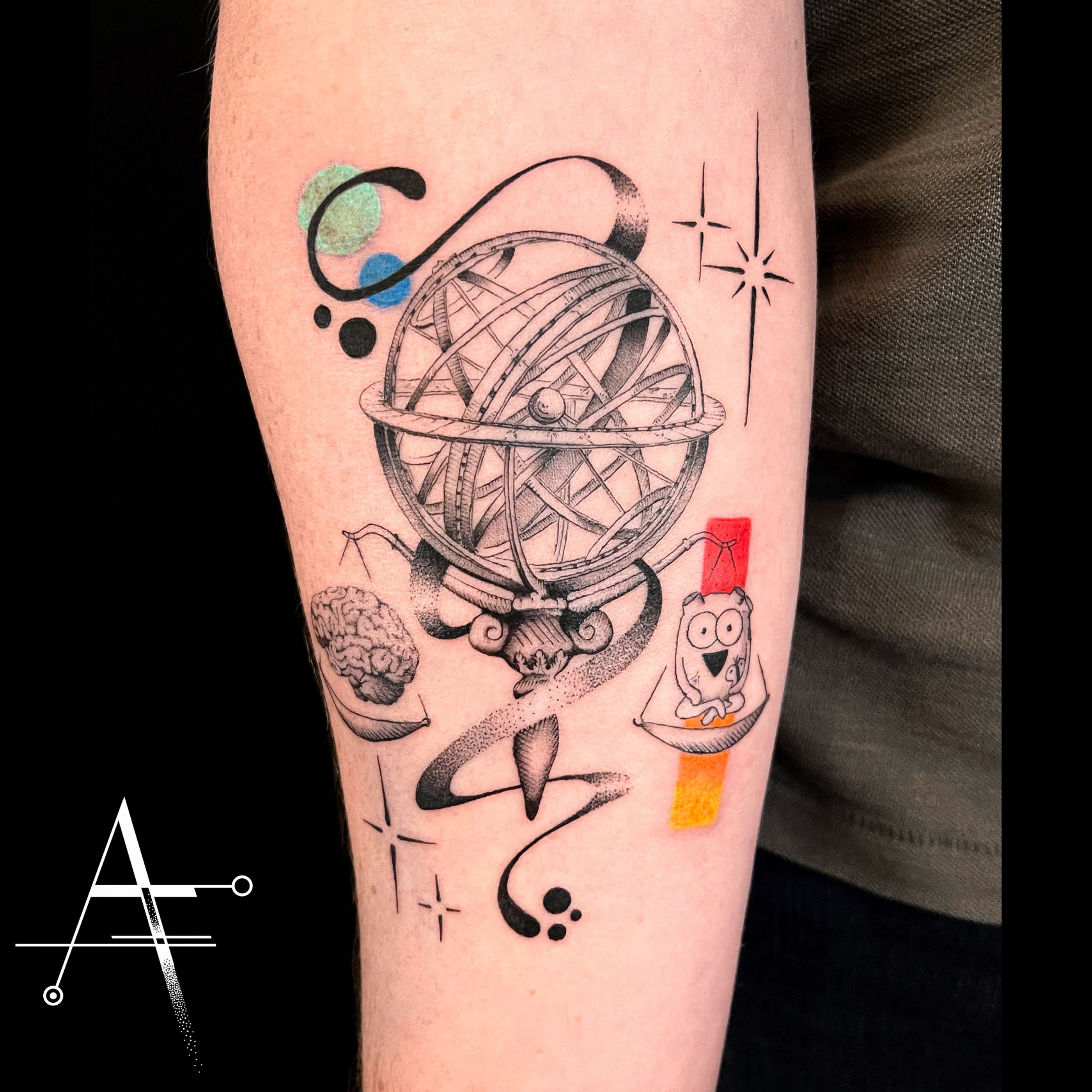 🧠 ⚖️ ♥️ . For custom designs and booking; alperfiratli@gmail.com . . . . . #geometrictattoo #geometric #colortattoo #astronomylover #tattooidea #customtattoo #heart #hearttattoo #surreal #finelinetattoo #brain #abstracttattoo #braintattoo #heartandbrain #theawkwardyeti #compasstattoo #armillary #spacetattoo #abstractart #scientificillustration #surrealtattoo #surrealart #astronomy #science #scienceart #scale #awkwardyeti #globetattoo #scientific
