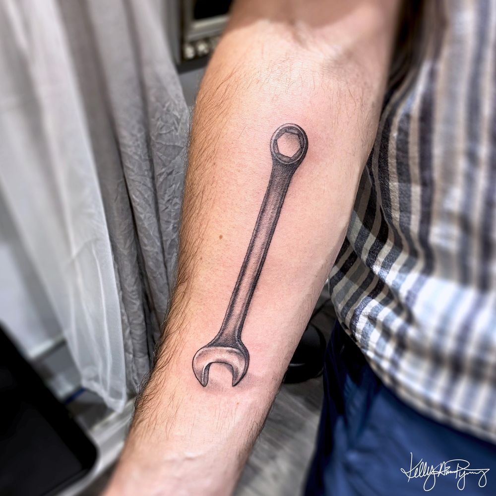 Wrench for Dylan. 🔧 ⁣ ⁣ ⁣ Done at @inkedlifemiami.⁣ ⁣ ⁣ ⁣ #wrenchtattoo #wrench #bngtattoos #blackandgraytattoos #realism #realistictattoo #worldfamousink #axysvalhalla #axysrotary #miamibeach #southbeach #latattooartist #explore #explorepage #inked #ink #tattoo #armtattoos #menstattoos