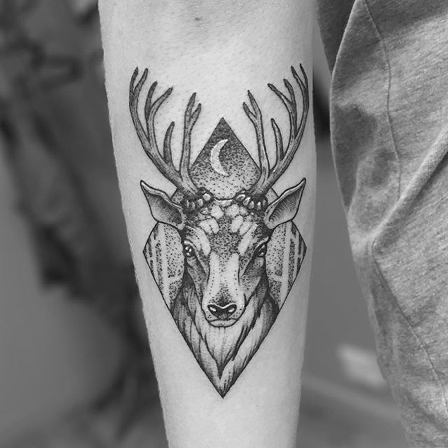 Dotwork Stag Tattoo by TomTom Tattoos #dotwork #blackwork #stag #TomTomTattoos