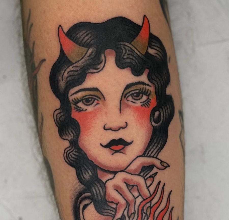 Devil lady traditional tattoo