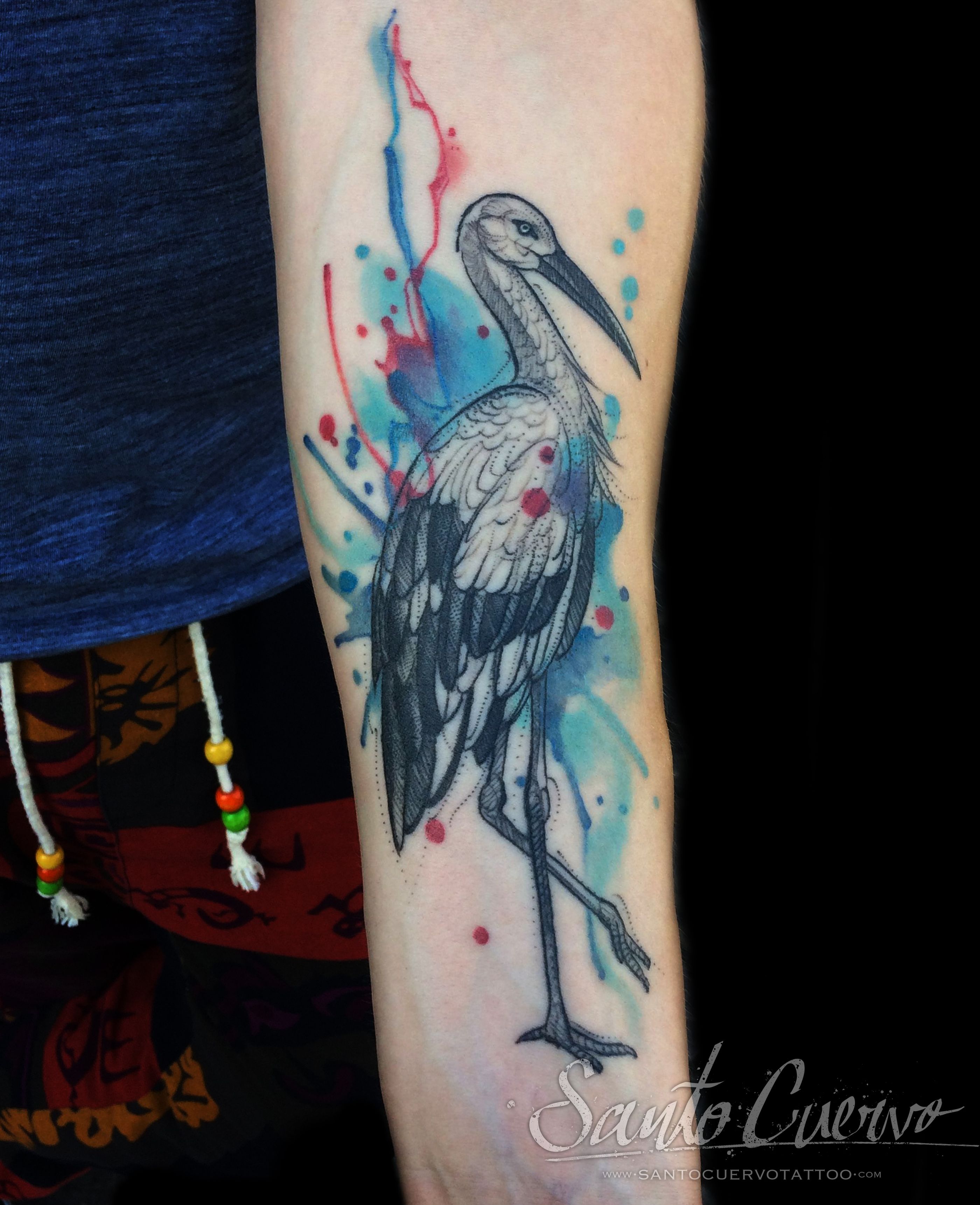 Express your love for London with this beautiful watercolor heron tattoo, delicately placed on your forearm. Embrace the illustrative style and stand out from the crowd.