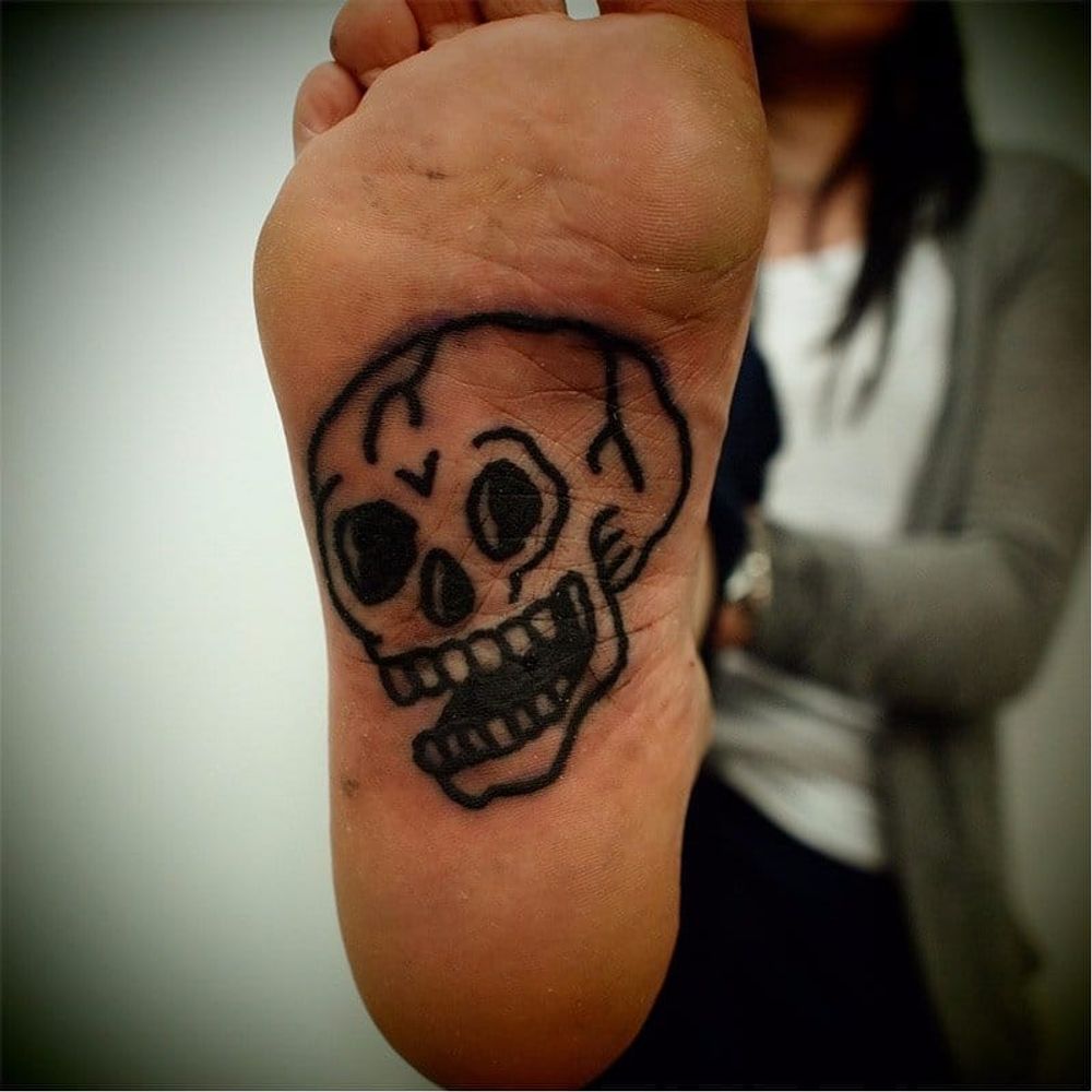 Foot sole tattoo via Google. Auch! Artist unknown #skull #skulltattoo #sole #blackwork #blckwrk #btattooing