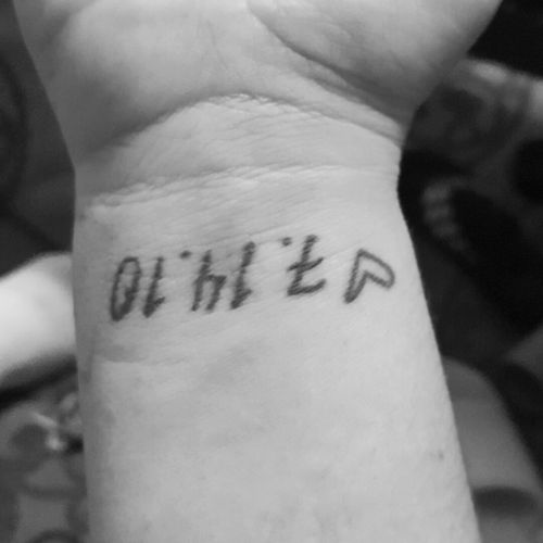 Memorial tattoo for my son done at Ink in the Clink (Mansfield,Oh) by Shannon King from Bucyrus, Ohio #memorial #mamasboy #mybaby #son #miscarriage #71410 #wristtattoo #black #inkintheclink #rip