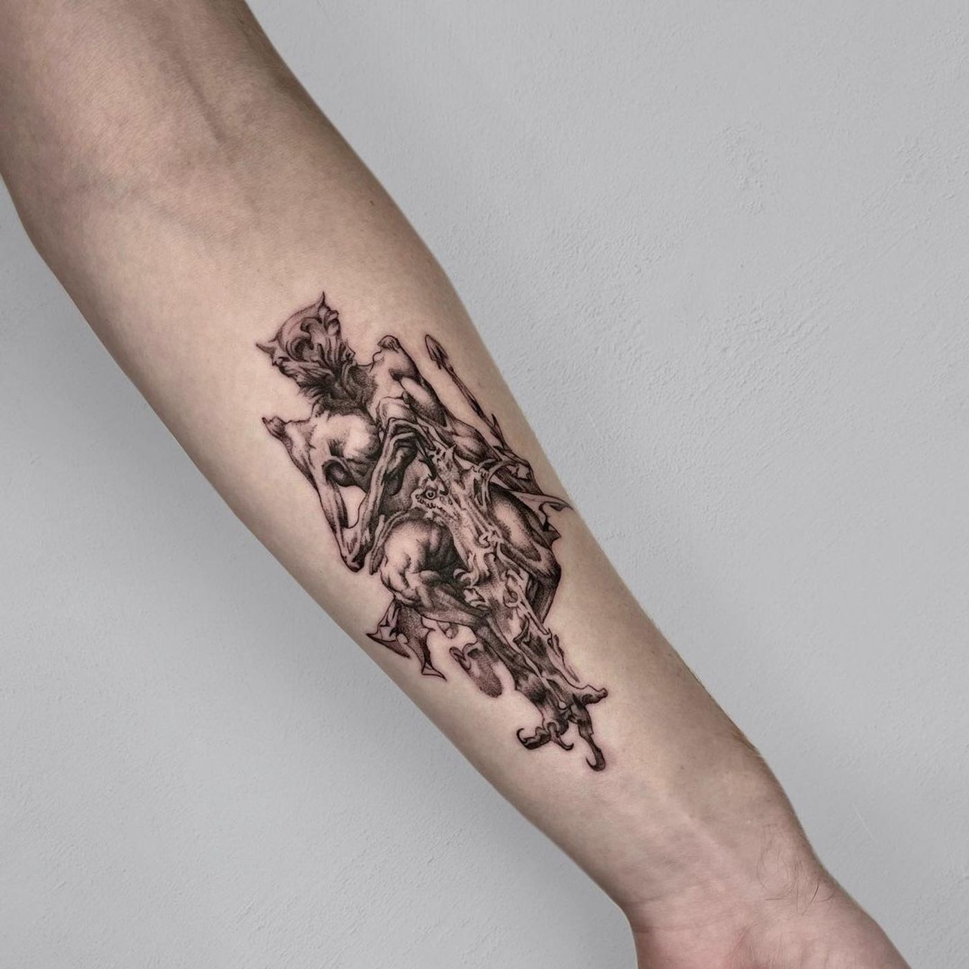 Capture the dark side with a striking realism devil tattoo on your forearm. Get inked in London, GB.