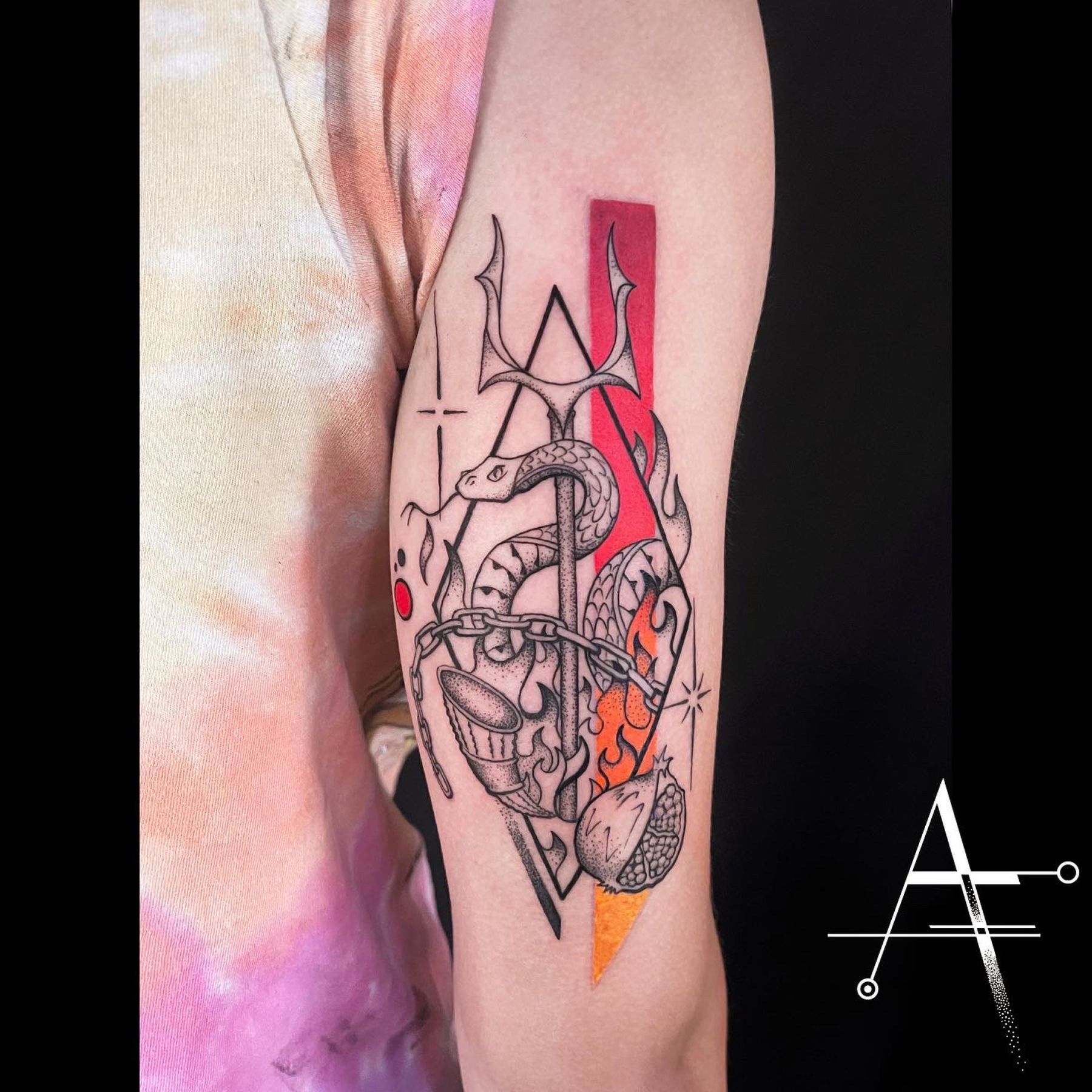 Hades… . For custom designs and booking; alperfiratli@gmail.com . . . . . #geometrictattoo #geometric #colortattoo #tattoo #tattooidea #customtattoo #hades #snake #snaketattoo #snakes #snakesofinstagram #abstracttattoo #snaketattoos #greekmythology #greekgods #mythology #mythologytattoo #greekmythologytattoo #abstractart #flametattoo #surrealtattoo #surrealart #watercolorart #firetattoo #scienceart #watercolortattoo #chaintattoo #chain #snakesofig