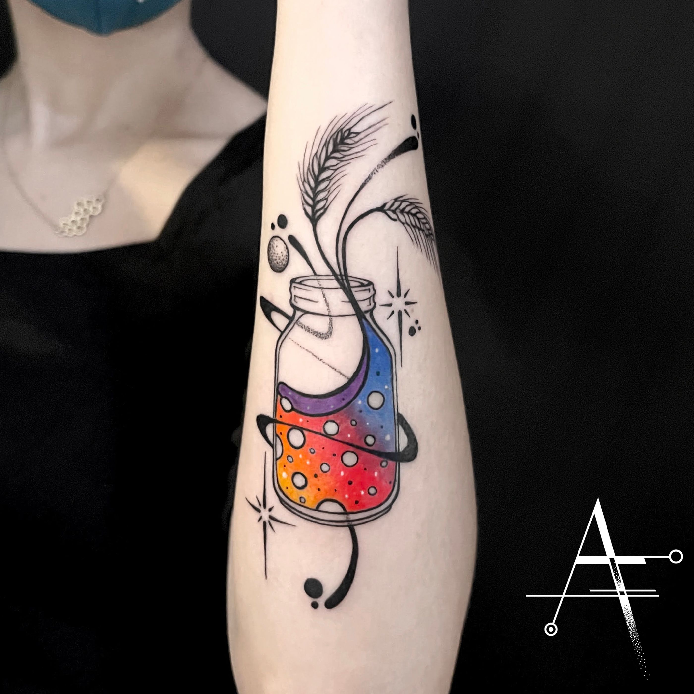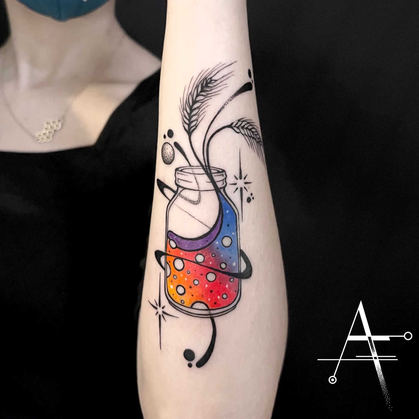 🥖 🌾 ✨ . For custom designs and booking: alperfiratli@gmail.com . . . . . . #alperfiratli #geometrictattoo #bread #colortattoo #tattoo #tattooartist #tattooidea #breadbaking #breadmaking #customtattoo #tattooist #baking #linework #starter #sourdoughstarter #abstracttattoo #cutetattoo #wheat #foodtattoo #breadmaker #dough #sourdough #sourdoughbread #space #galaxytattoo #poolish #spacetattoo #tattoosforgirls #nftart #startattoo