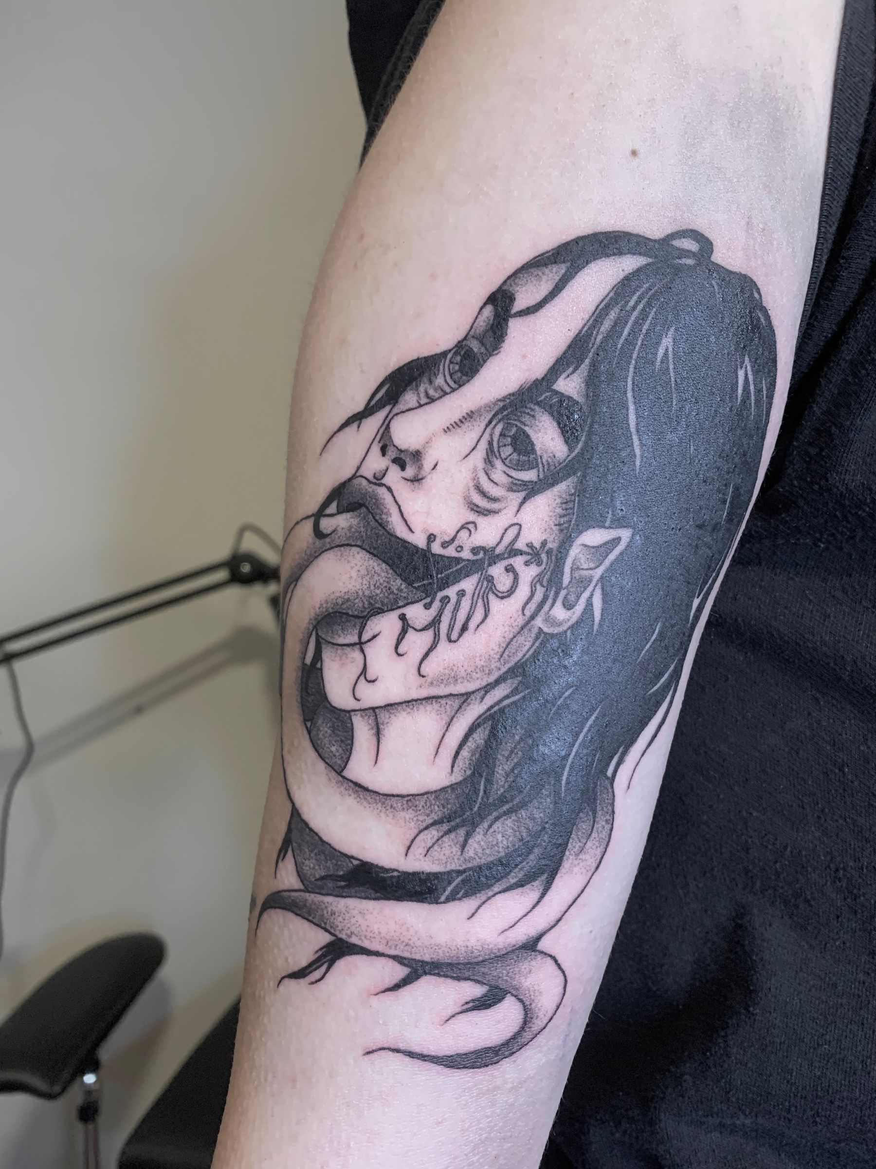 Blackwork dark horror tattoo