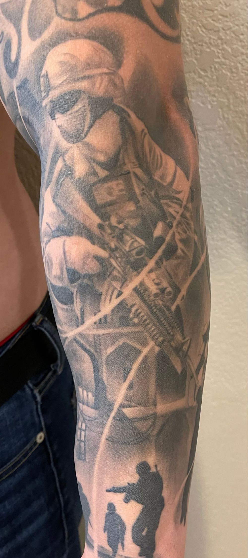Marine tribute tattoo to my brothers in 1/4 bravo company, 1st marine division.