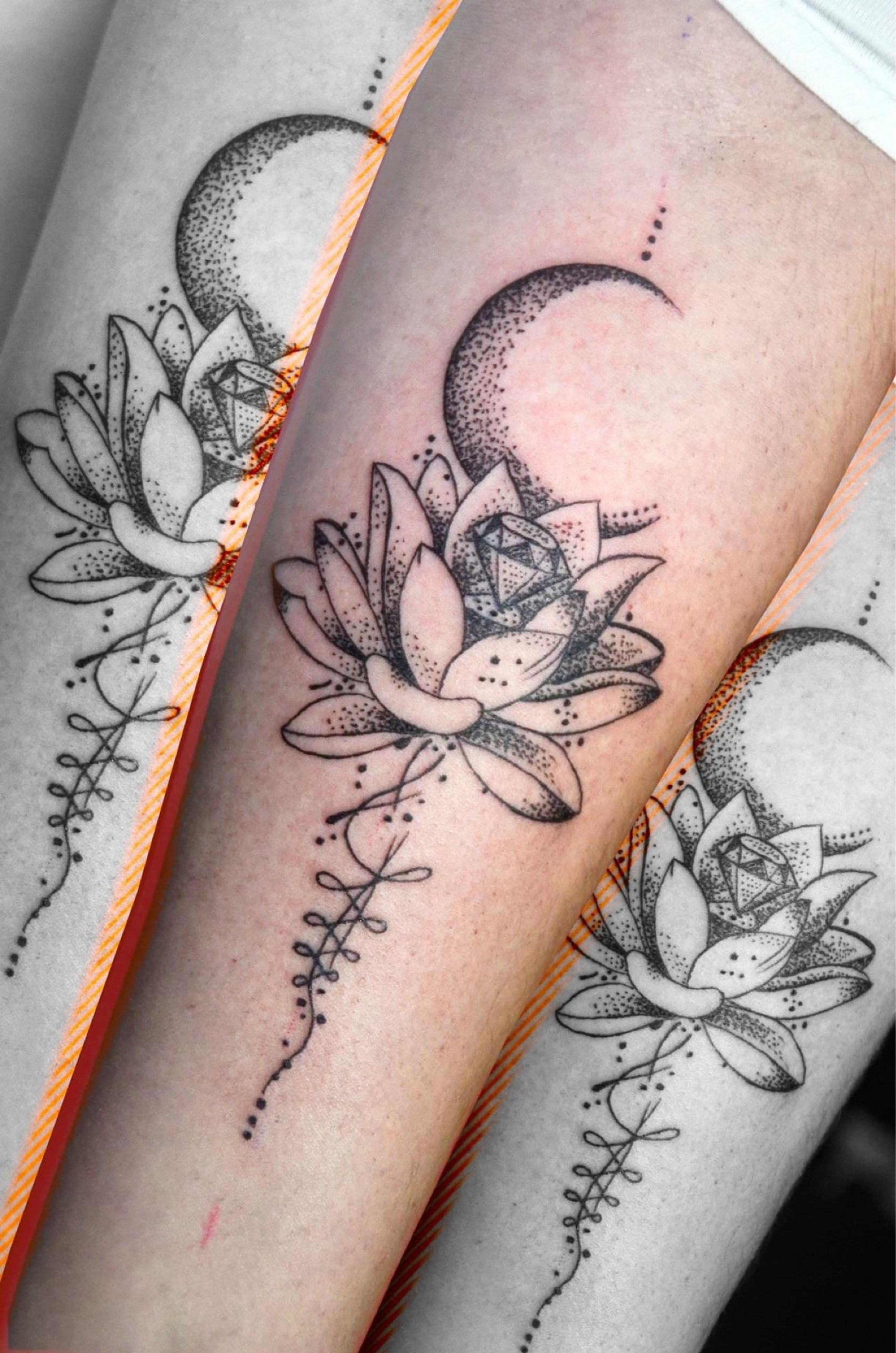 #pontilhismo #pontilhismotattoo #luatattoo #moontattoo #lotustattoo #diamantetattoo #diamondtattoo #thiagopadovani