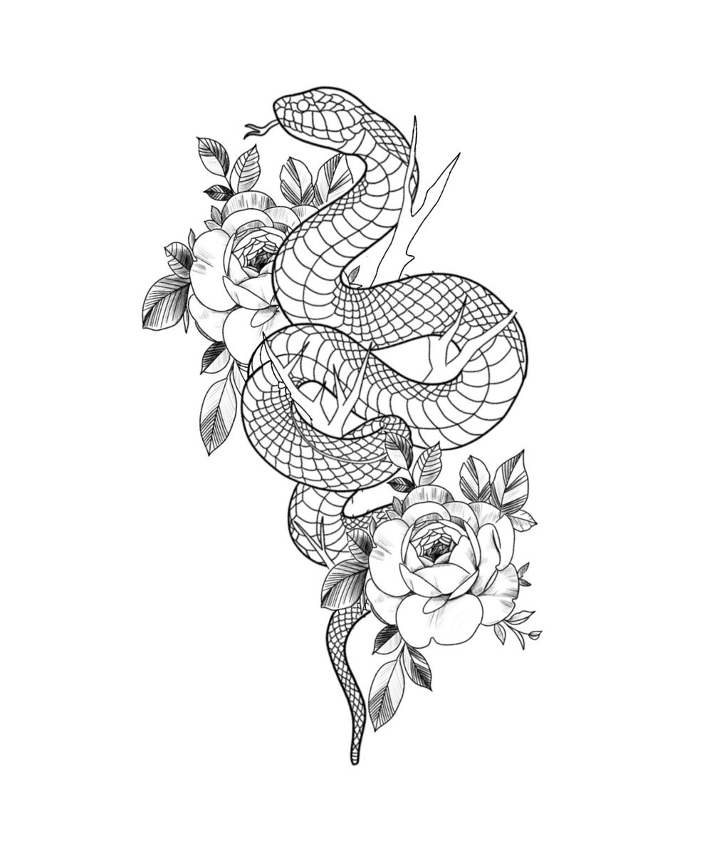 A snake with flowers #snake #snaketat #flower #flowertat #blackwork