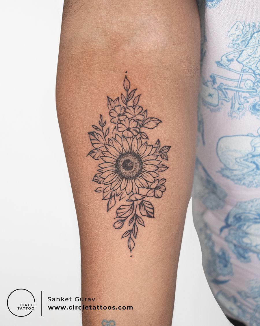 Sunflower Tattoo done by Sanket Gurav at Circle Tattoo Studio