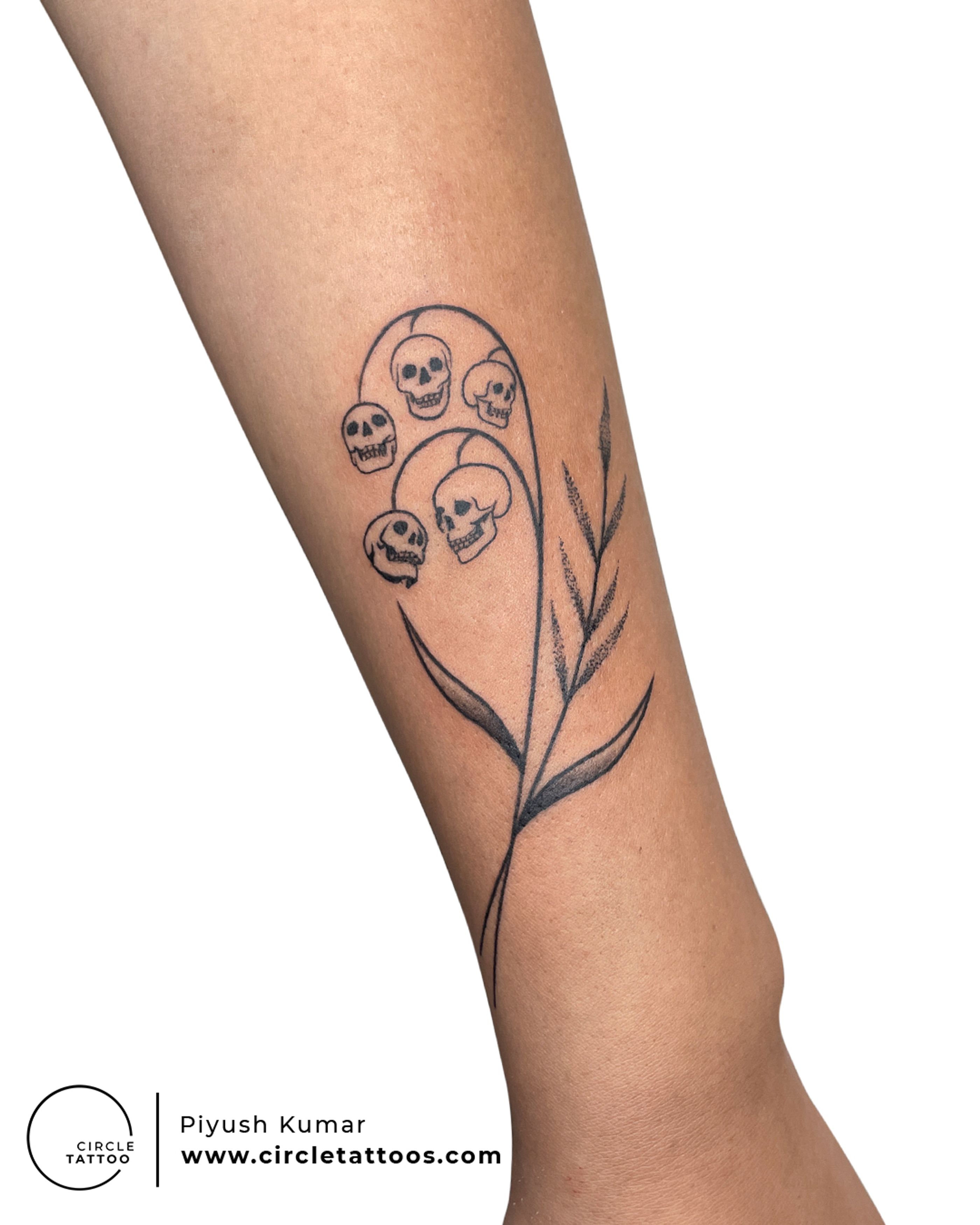 Skull and Flower Tattoo done by Piyush Kumar at Circle Tattoo Delhi
