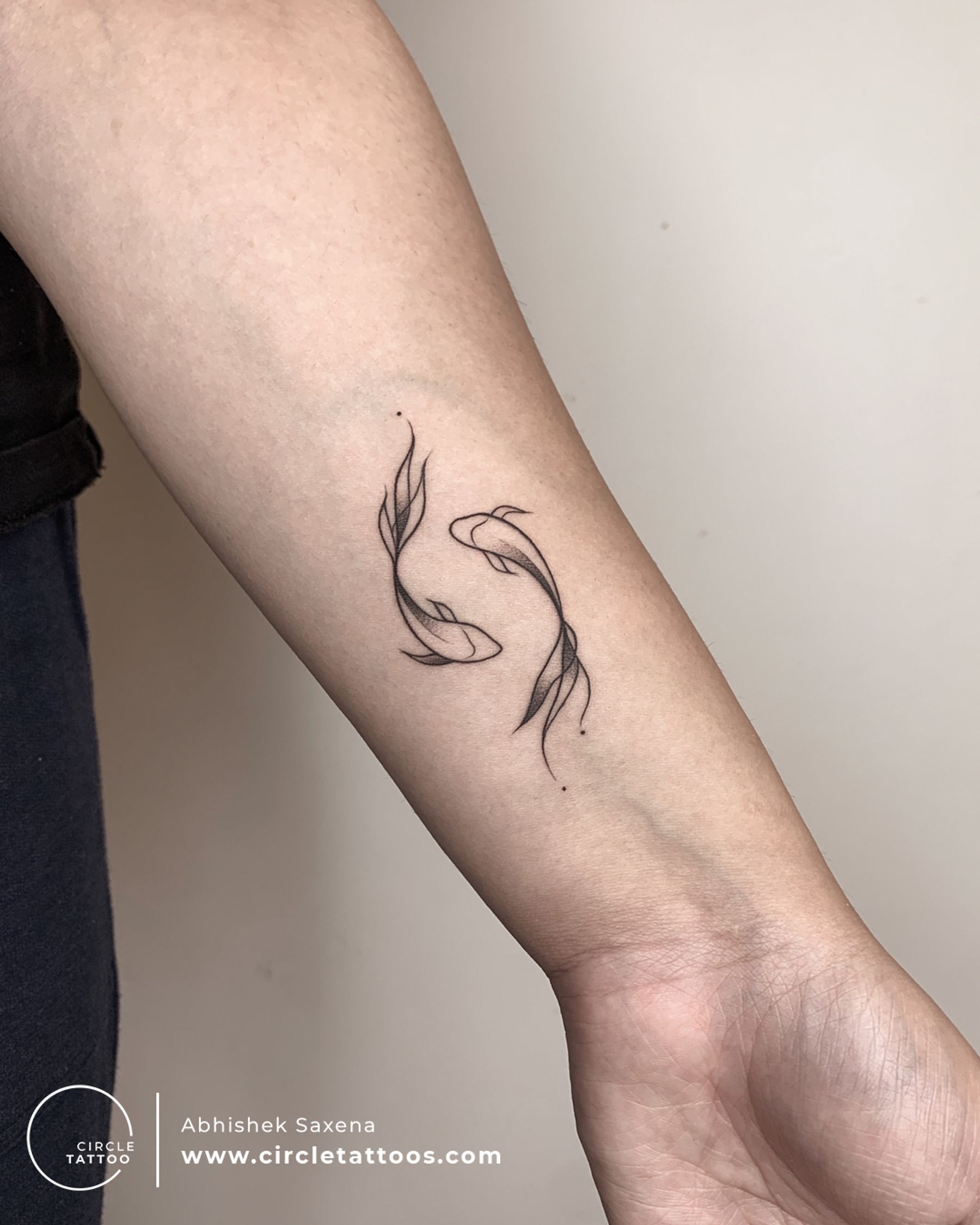 Koi Fish Line Art Tattoo done by Abhishek Saxena at Circle Tattoo Delhi