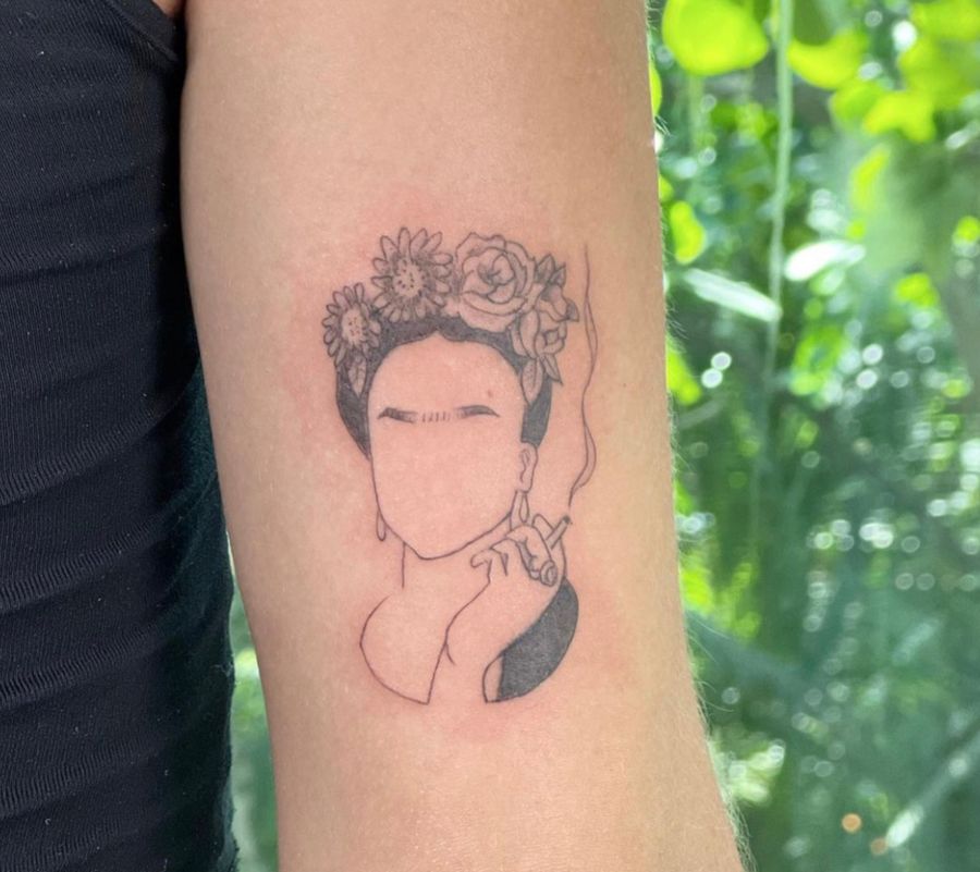 Fine Line Frida Kahlo Find Us at IG @tulumbeachtattoo Or Whatssapp (+52) 119 33 54 Tulum, Mexico