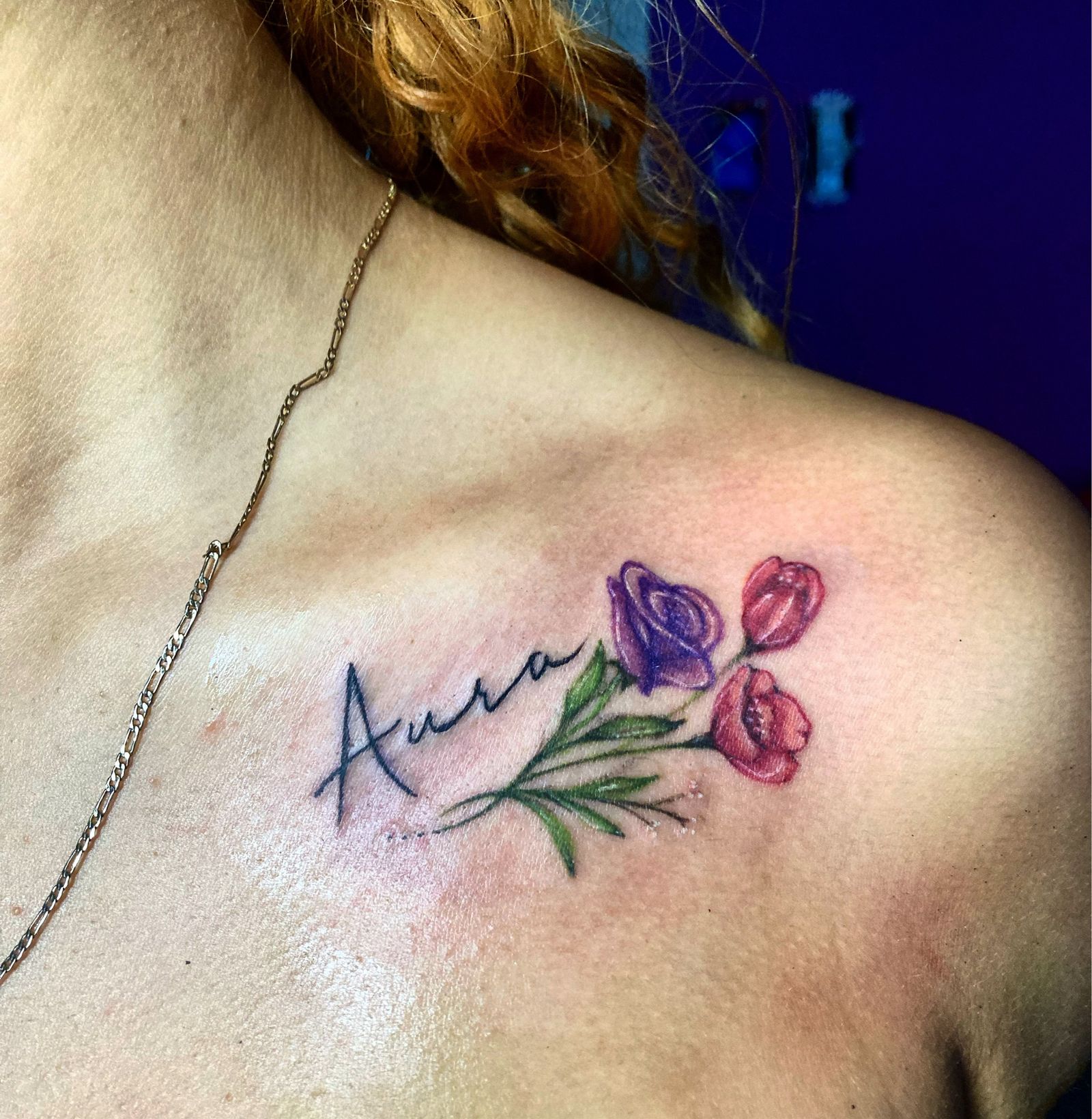 Script/ flowers tattoo