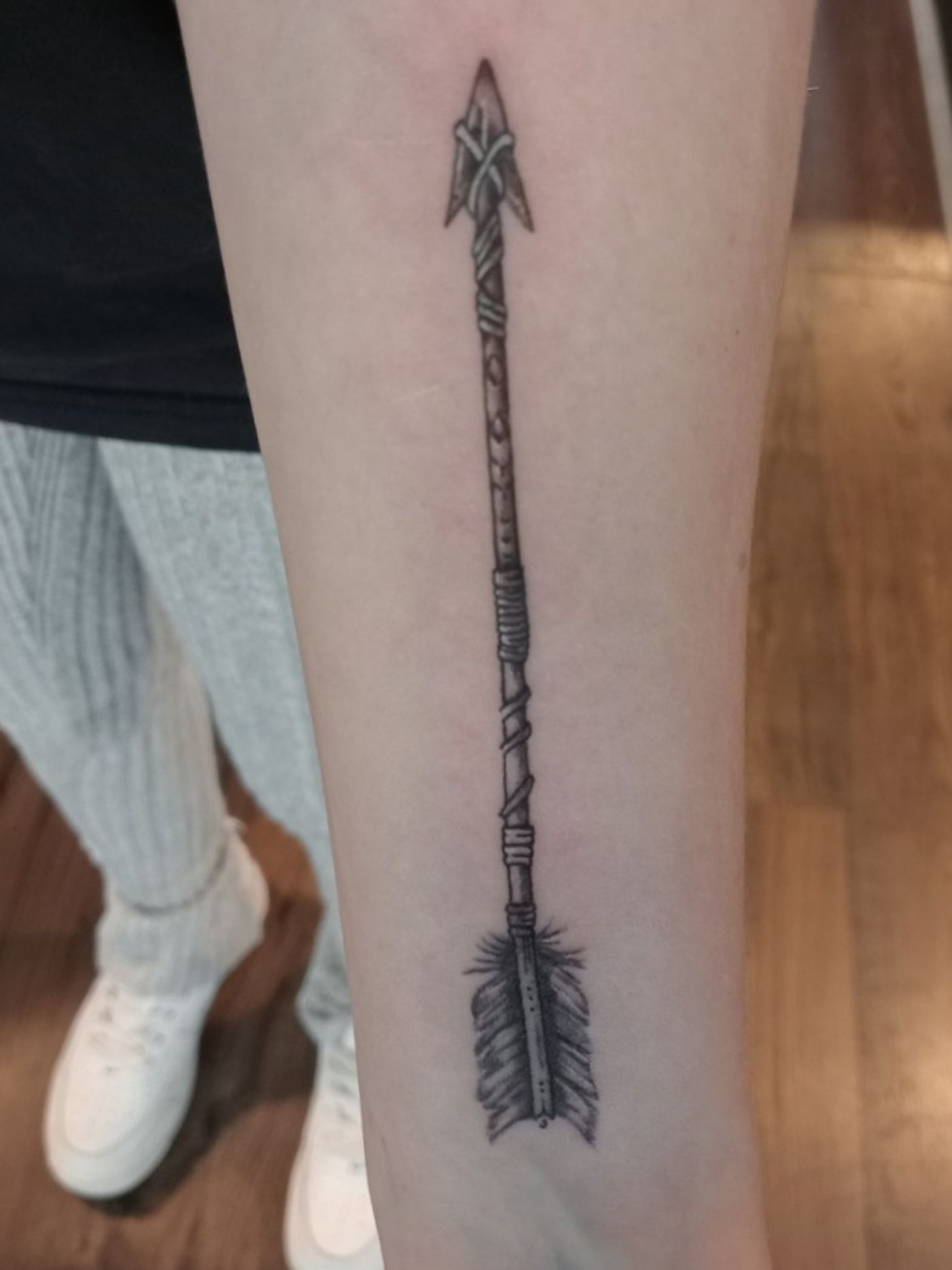 Black and grey Arrow Done by myself at Acherontia tattoo studio, Burnley. Bookings: follow and message @astonhesketh_tattoo