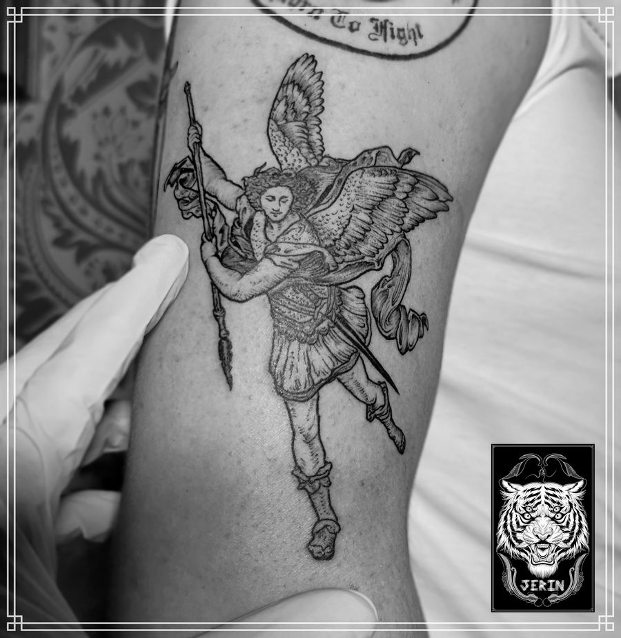 A Custom Finelines A Warrior Angel tattoo for Michael.