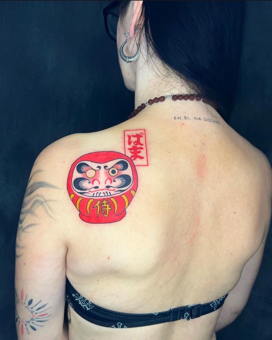 • Daruma doll • traditional design bringing luck, wealth and happiness by our resident @dr.ivo_tattoo