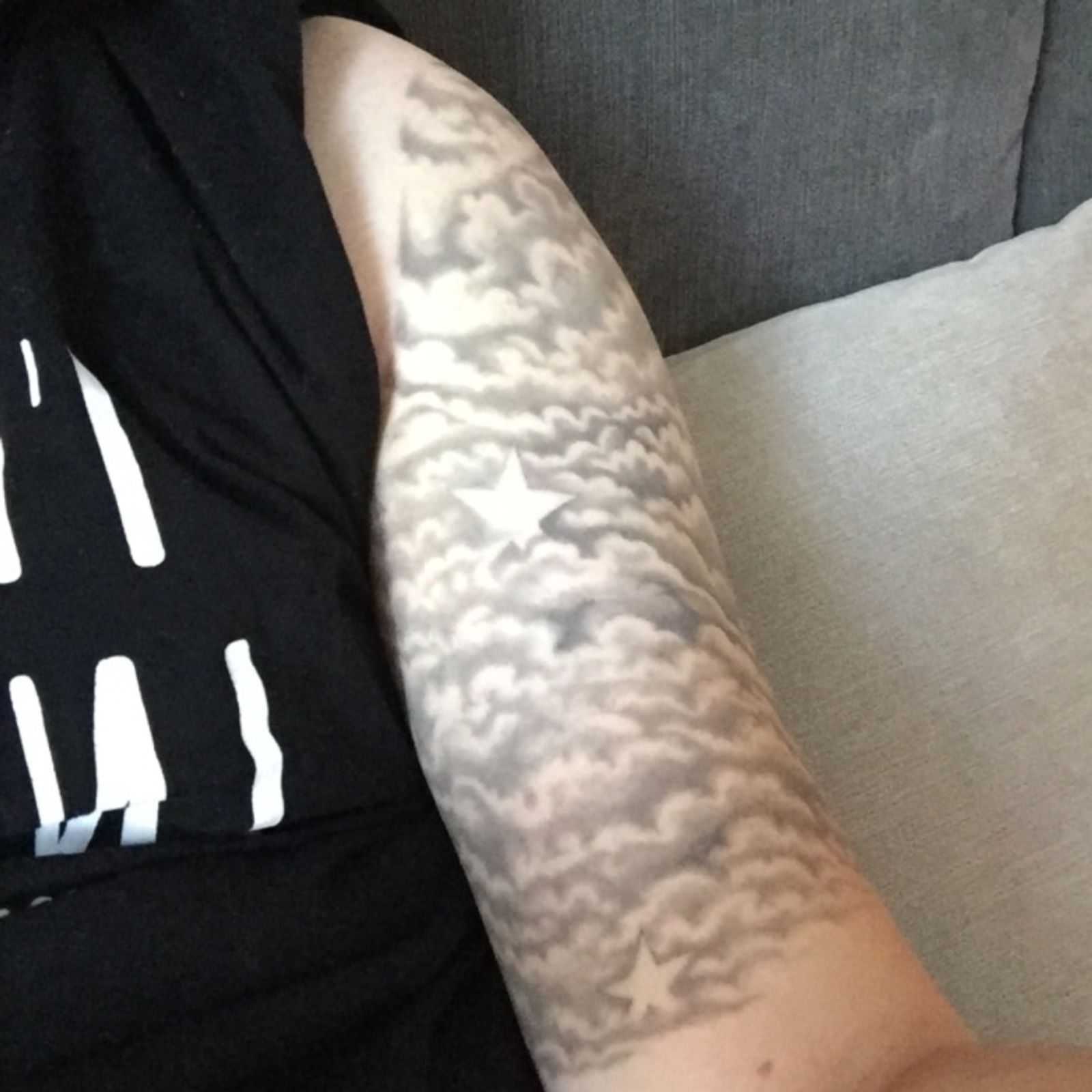 Half sleeve #clouds #stars #halfsleeve #blackandgrey