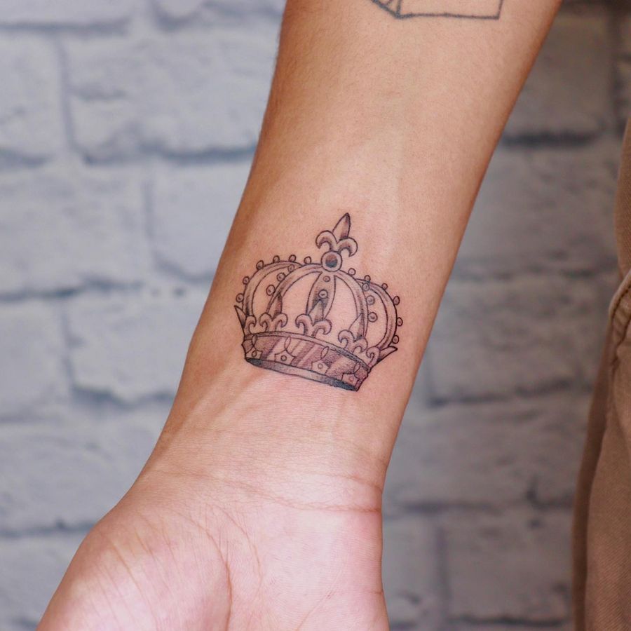 Elegant and detailed crown design on the forearm by the talented artist Marcos. Perfect for a touch of royalty in your style.