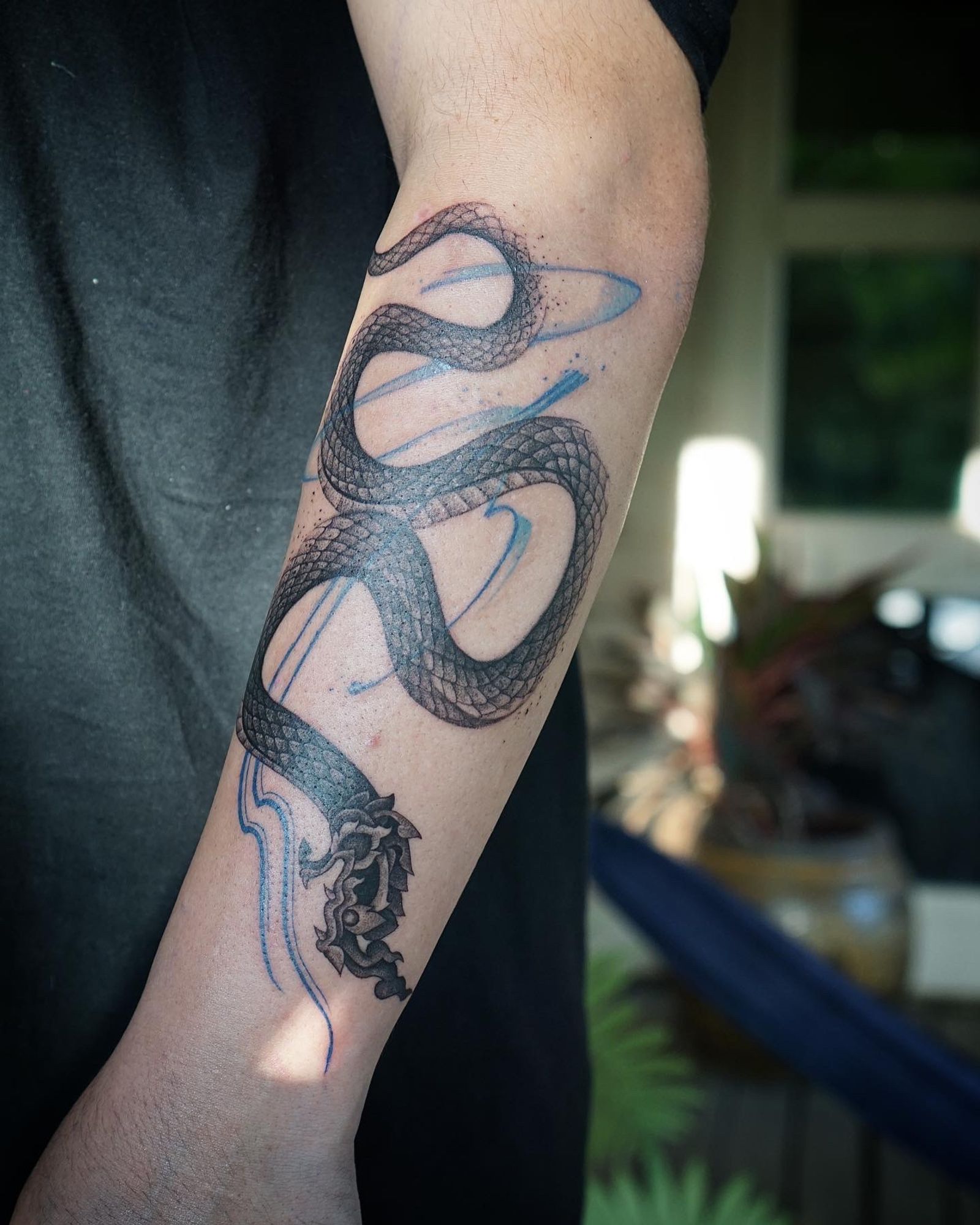 𝙄𝙂: π™£π™–π™©π™š_π™©π™π™–π™žπ™‘π™–π™£π™™ 🌿 Blackwork Thai Naga tattoo with abstract flow by Thai tattoo artist in Chiang Mai, Thailand