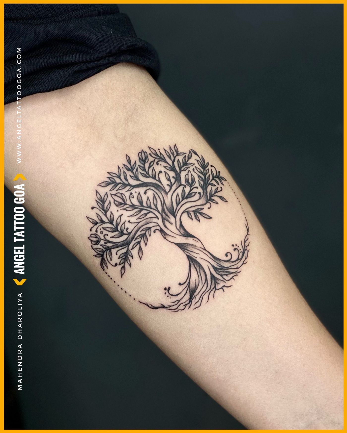 Tree Of Life Tattoo By Mahendra Dharoliya At Angel Tattoo Goa, Best Tattoo Artist in Goa, Best Tattoo Studio in Goa, Best Tattoo Shop in Goa, Best Tattoo Studio in Baga Goa, Best Tattoo Artist in Baga Goa