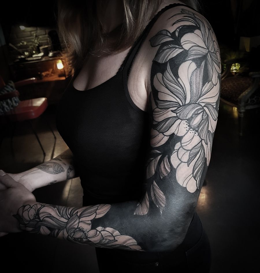 Flowers on black #flowersonblack #blackouttattoo #fullblacktattoo