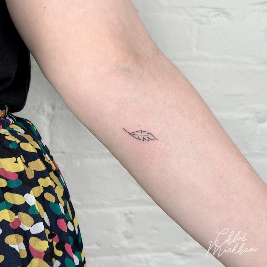 Get inspired by this delicate and intricate fine line leaf tattoo by talented artist Chloe Mickham.