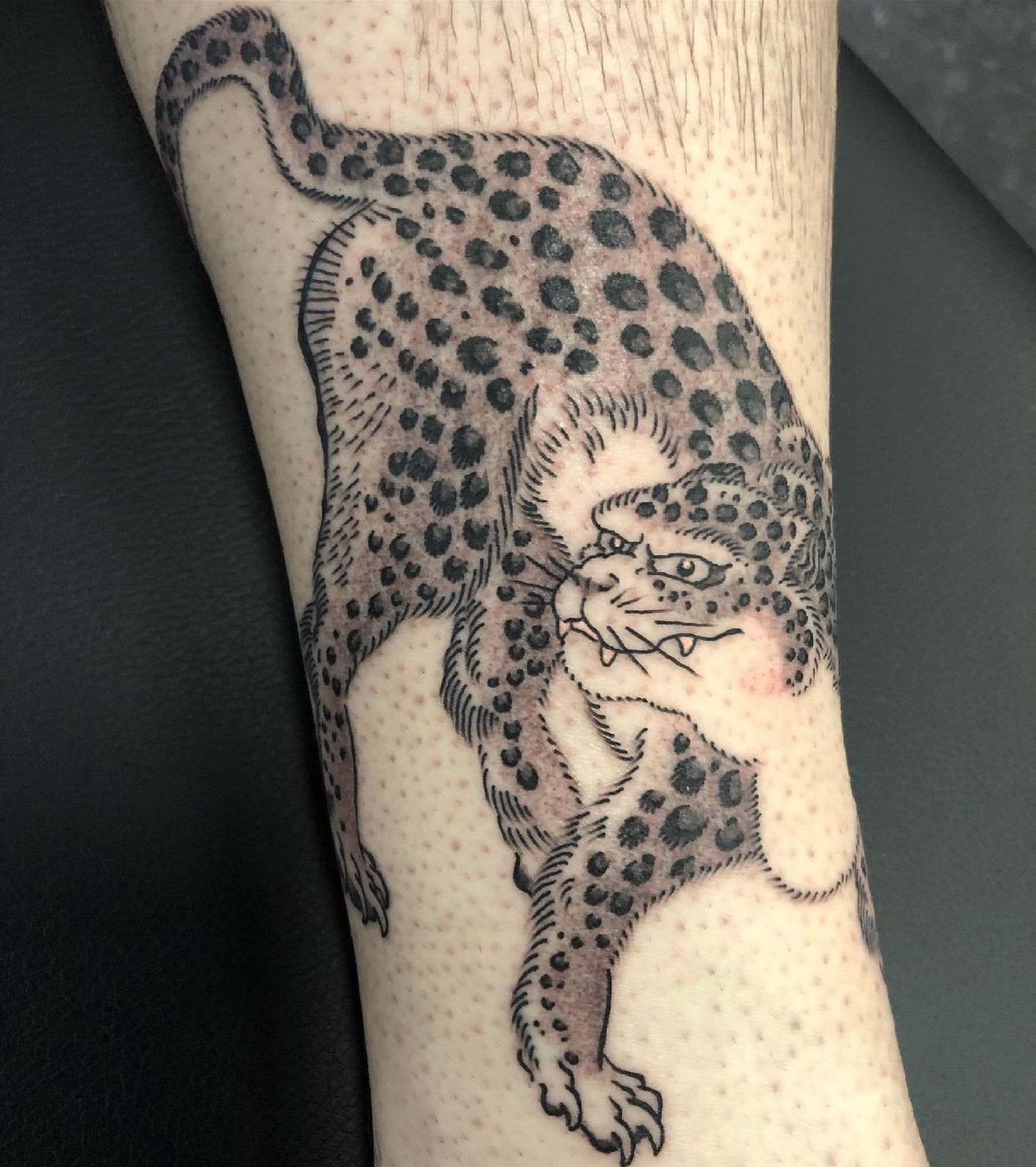 Leopard tattoo made by Robert Johnson of the Bell Rose Tattoo in Daphne, Alabama.