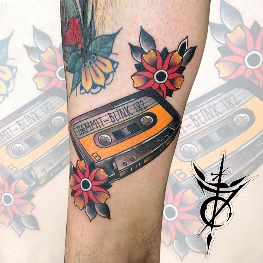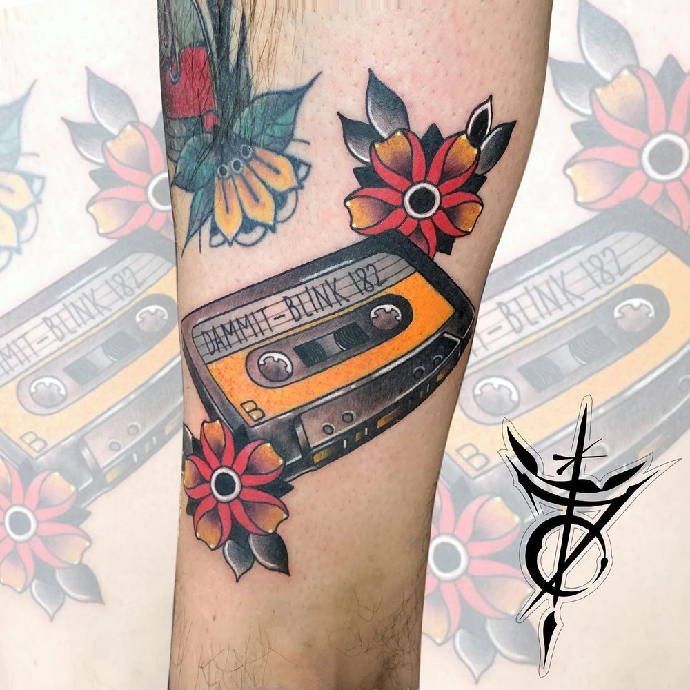 Audio Cassette Blink-182 Neo Traditional Tattoo done at Hammersmith Tattoo London