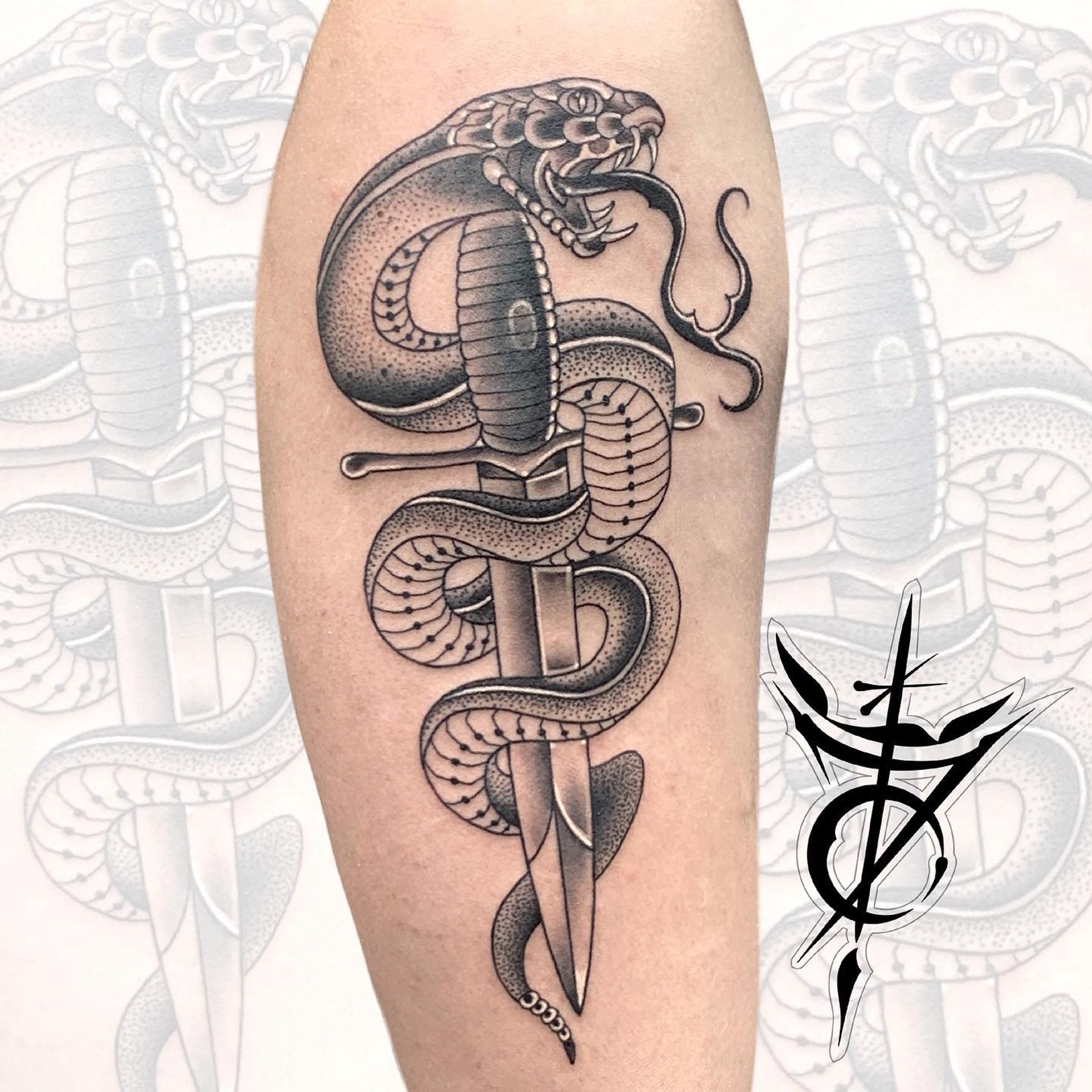 Snake and Dagger Neo Traditional Tattoo done at Hammersmith Tattoo London