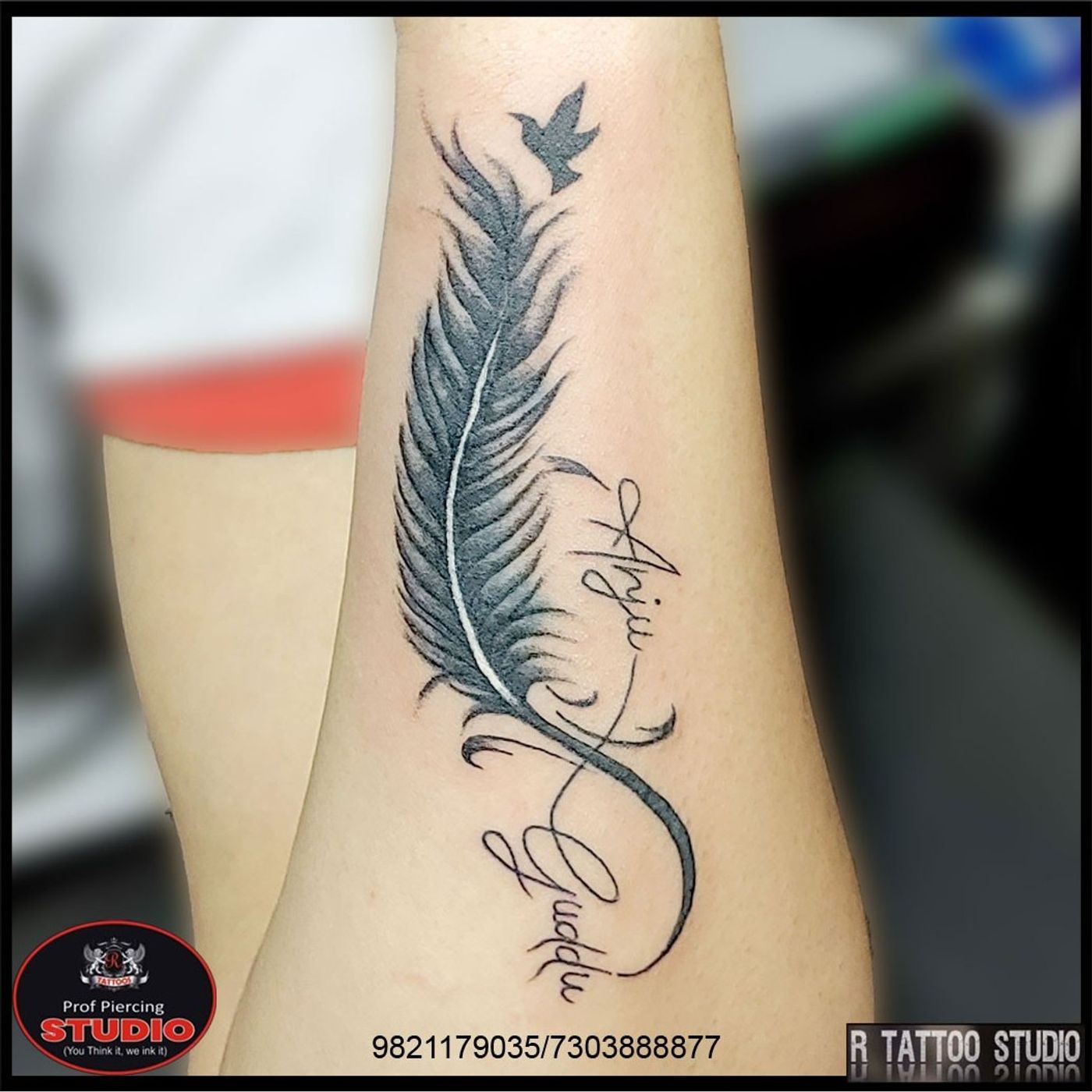 Feather with Infinity symbol tattoo.. #feather #infinity #symbol #feathertattoo #infinitytattoo #symboltattoo #love #lovetattoo #family #bonding #tattoo #tattoos #tattooing #ink #inked #art #artist #coveruptattoo #rtattoo #rtattoos #rtattoostudio #ghatkopar #ghatkoparwest #mumbai #india
