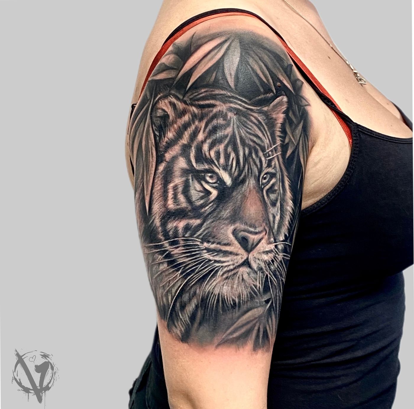 #realistic #tiger #coverup done for such an amazing customer! I’m feel so lucky and grateful to have some really sweet clients :)) . Swipe 👉🏼 . . . #realism #realismtattoo #realistictattoo #tigertattoo #coveruptattoo #animal #animaltattoo #blackandgreytattoo #portraittattoo #tattoodo #bishoprotary #panthera #pantheraink #londontattooartist #femaletattooartist #bnginksociety #coverupG #coverupg