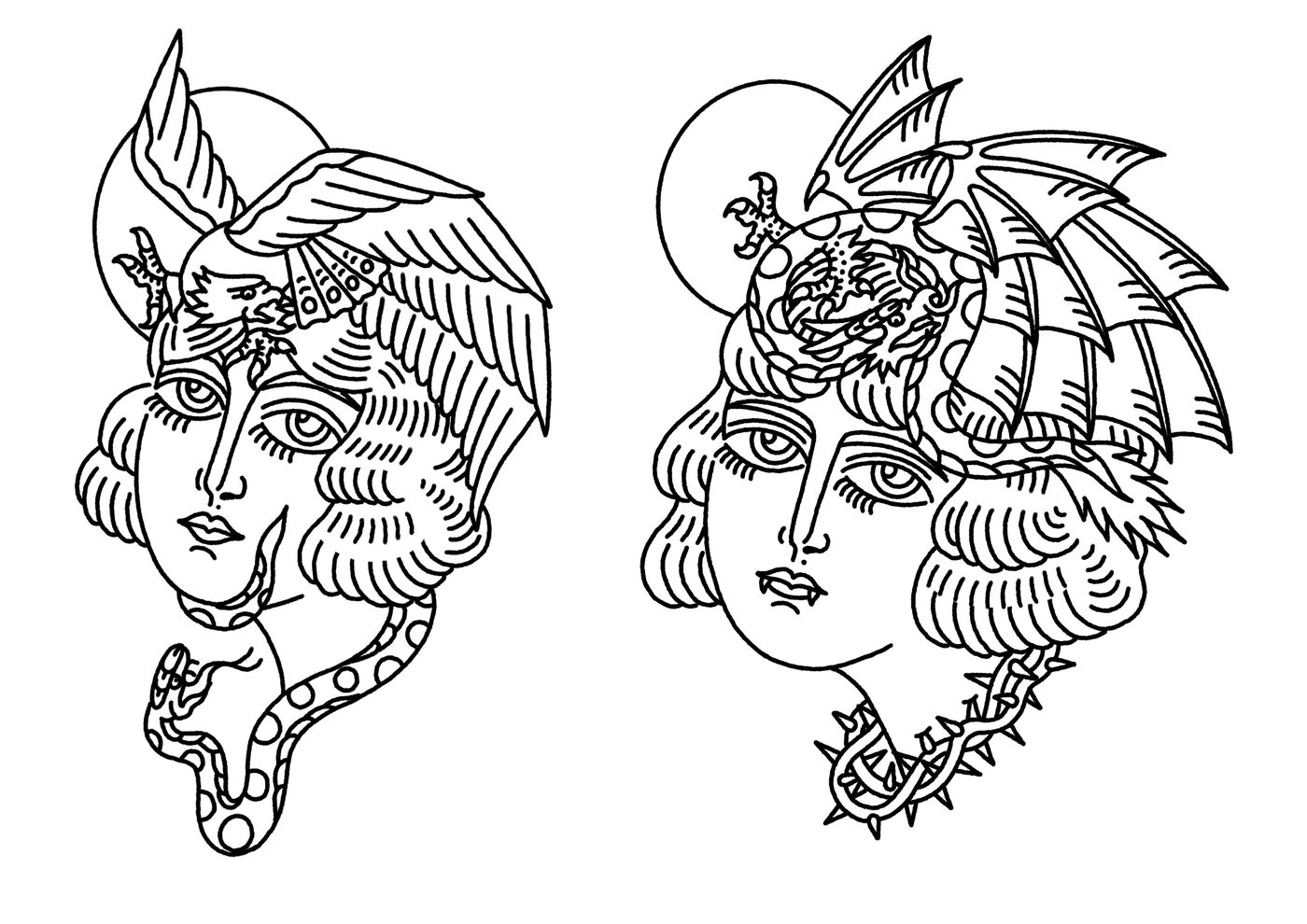 Lady heads with animals