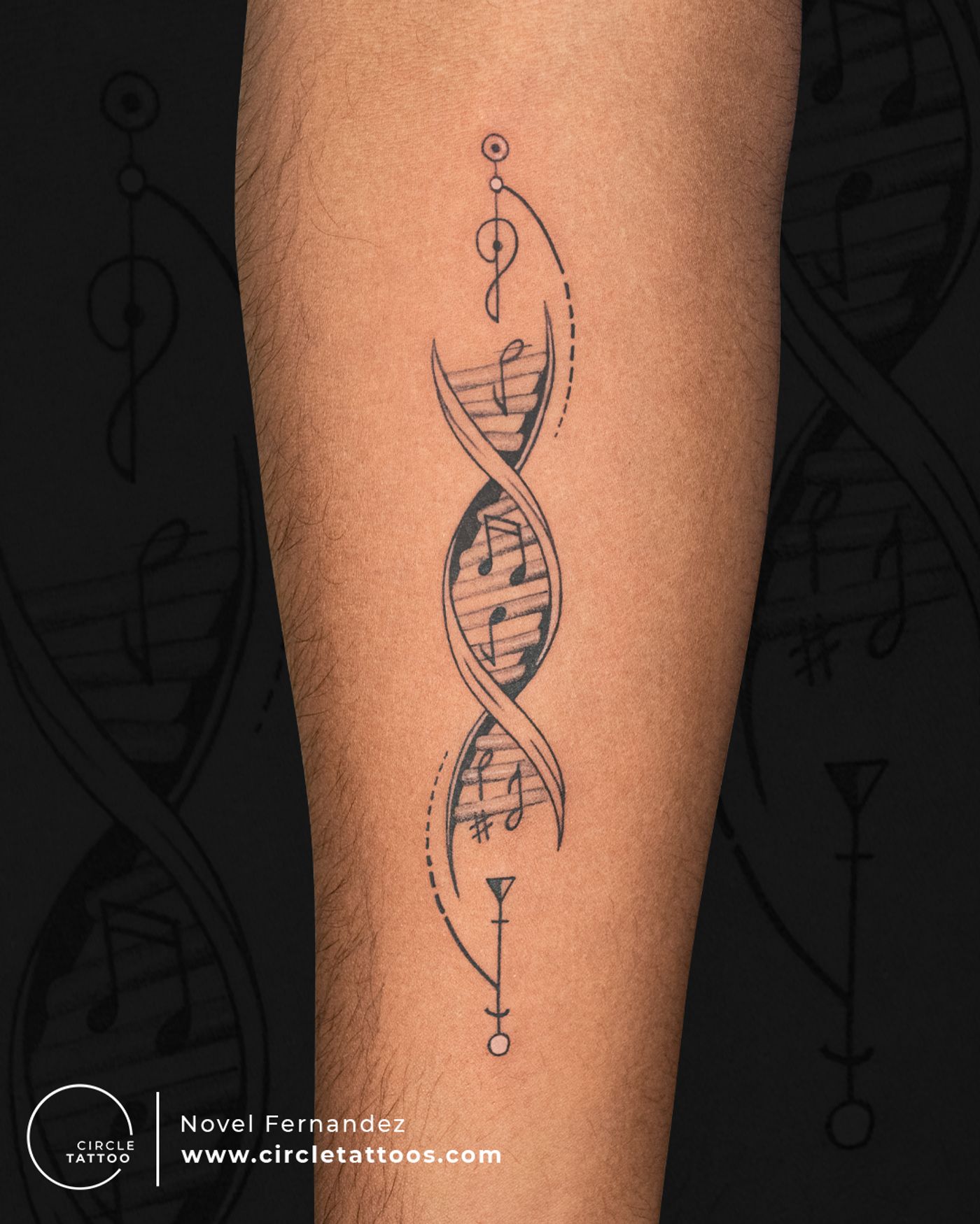 Music Note and Dna Tattoo made by Novel Fernandez at Circle Tattoo India