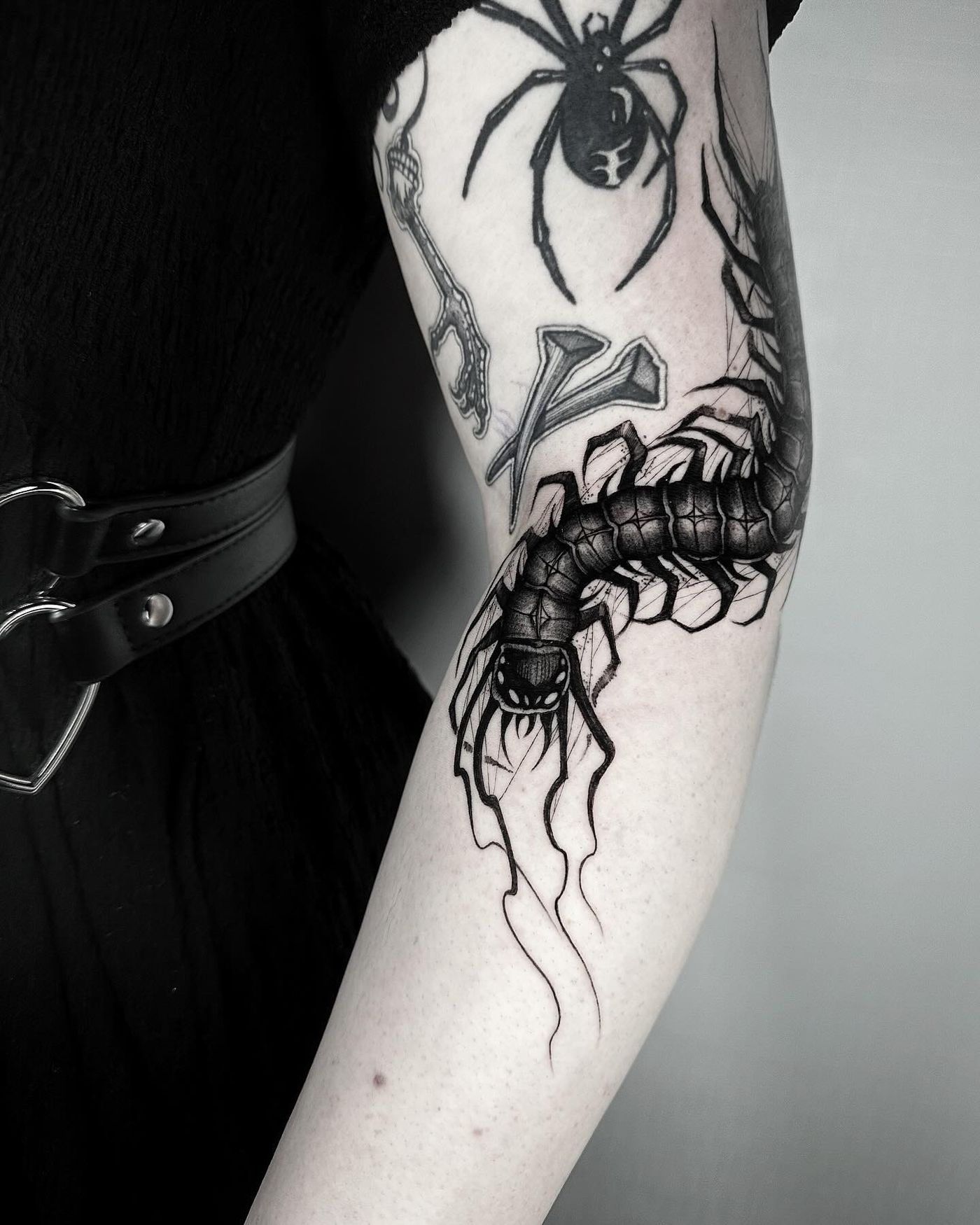 • Centipede # ♾️ • favourite subject for tattoos lately! Beautiful freehand piece by our resident @fla_ink Get in touch to book with Flavia this month! Books/info in our Bio: @southgatetattoo • • • #centipede #centipidetattoo #freehandtattoo #realistictattoo #londontattoo #southgate #blackwork #london #southgatetattoo #finelinetattoo #northlondontattoo #southgatepiercing #southgateink #londonink #amazingink #enfield #blackworktattoo #northlondon #londontattoostudio #sgtattoo