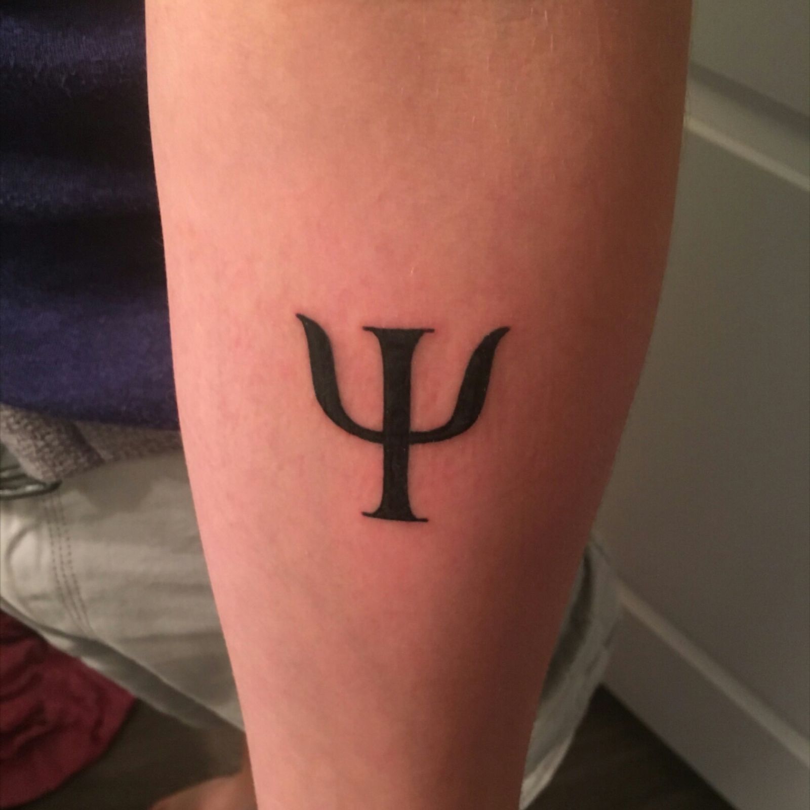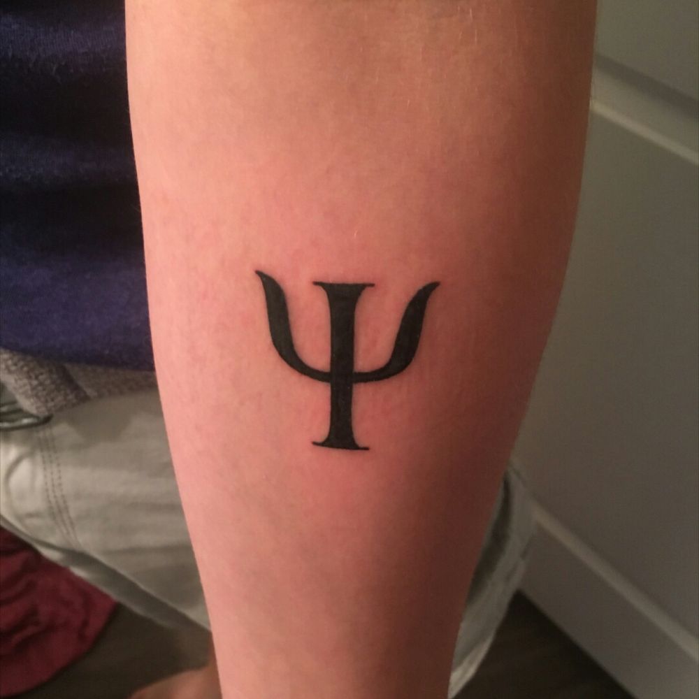 The first letter of the Greek word psuche, meaning mind/ soul, from which the term psyche arose; which gave us the word psychology. 3rd and most recent tattoo