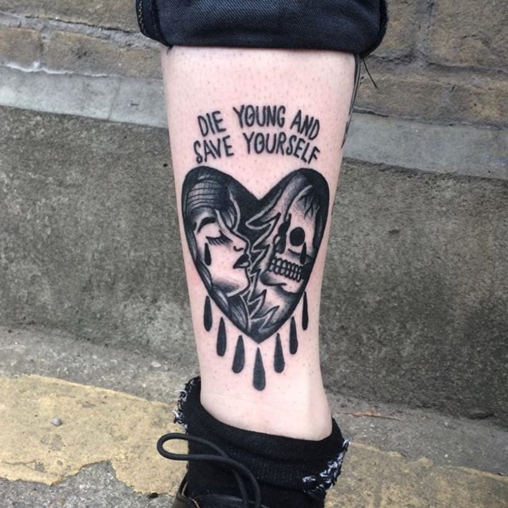Brand New tattoo by Josh Marks. #brandnew #band #lyrics #music #bands #blackwork