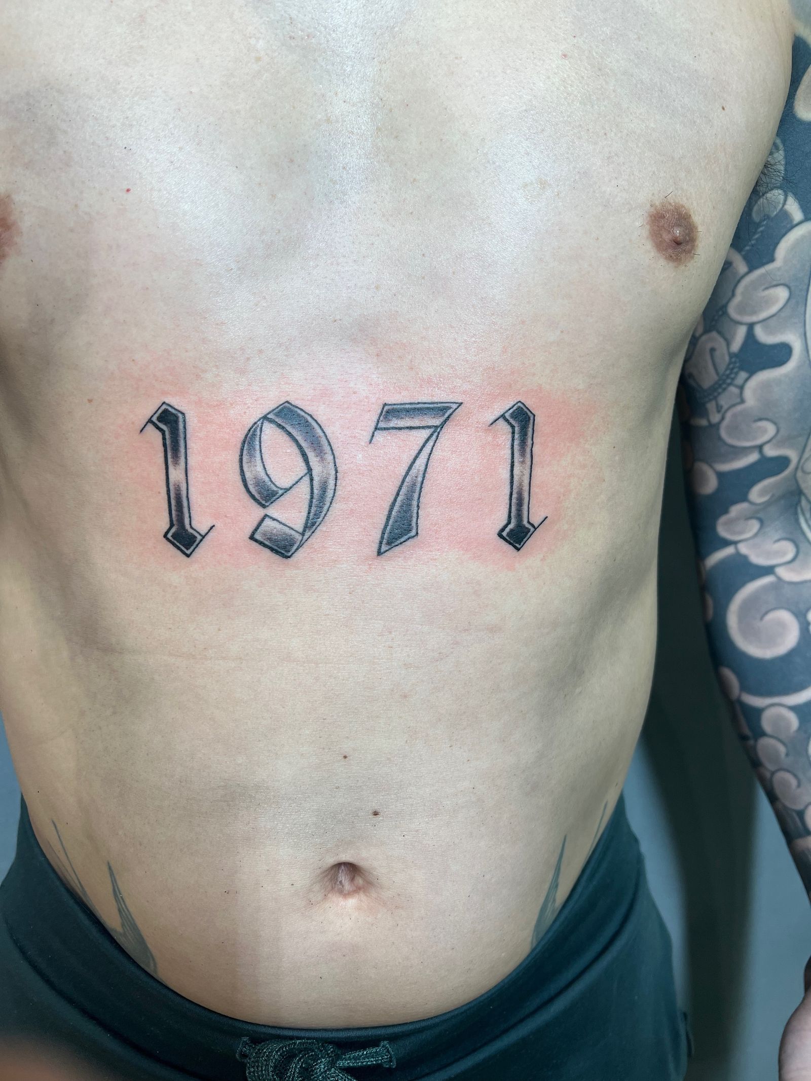 Celebrate special moments with Clayton Jeremiah's exquisite lettering tattoo design of a significant date.