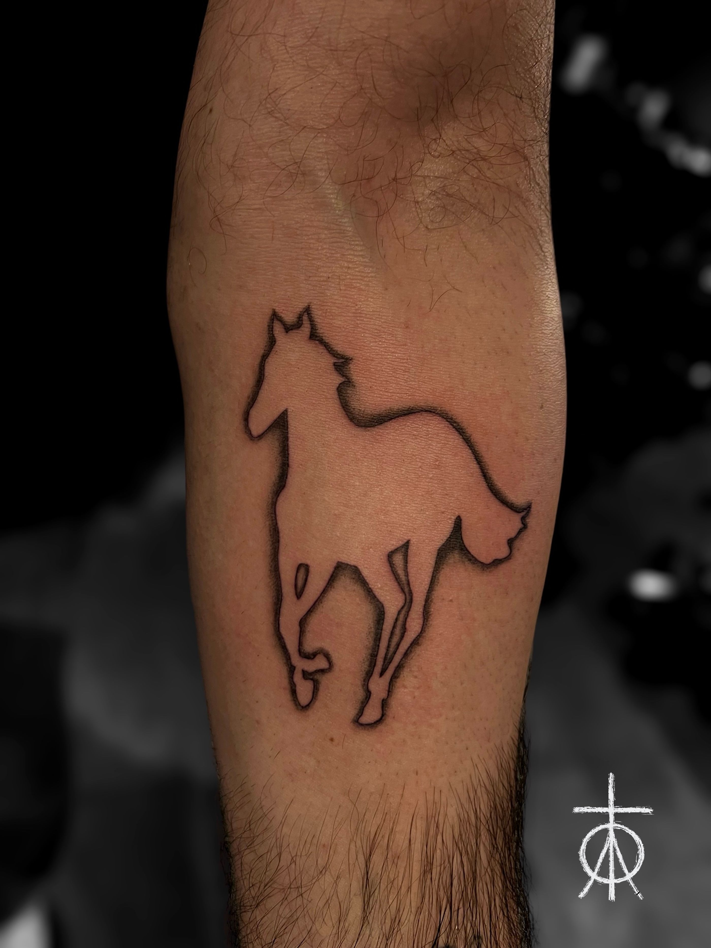 White Pony Logo, Deftones Tattoo by Claudia Fedorovici, Tattoo Artist in Amsterdam at Tempest Tattoo Studio #deftones #whitepony #logotattoo #claudiafedorovici #tattooartistsamsterdam #tempesttattoostudio