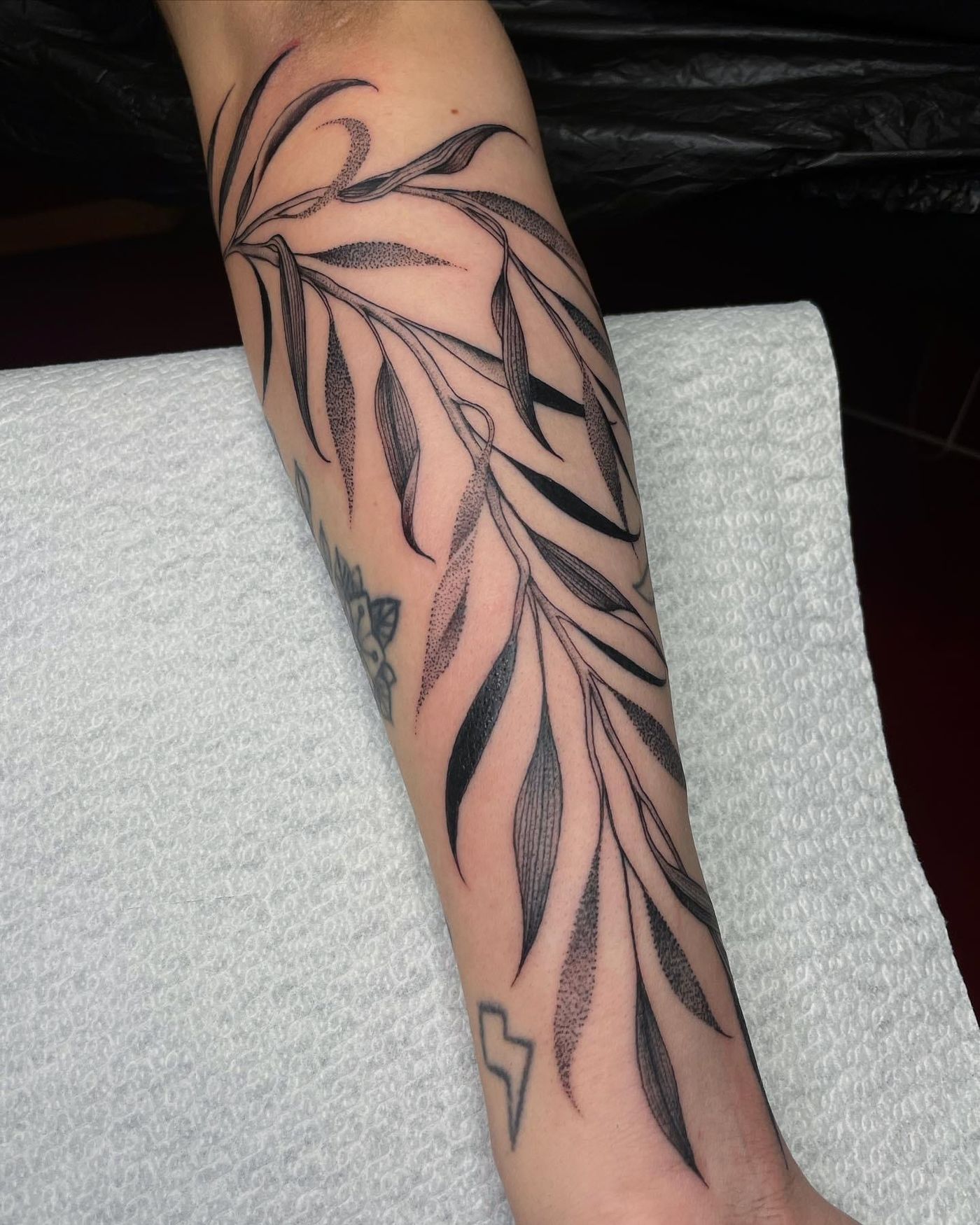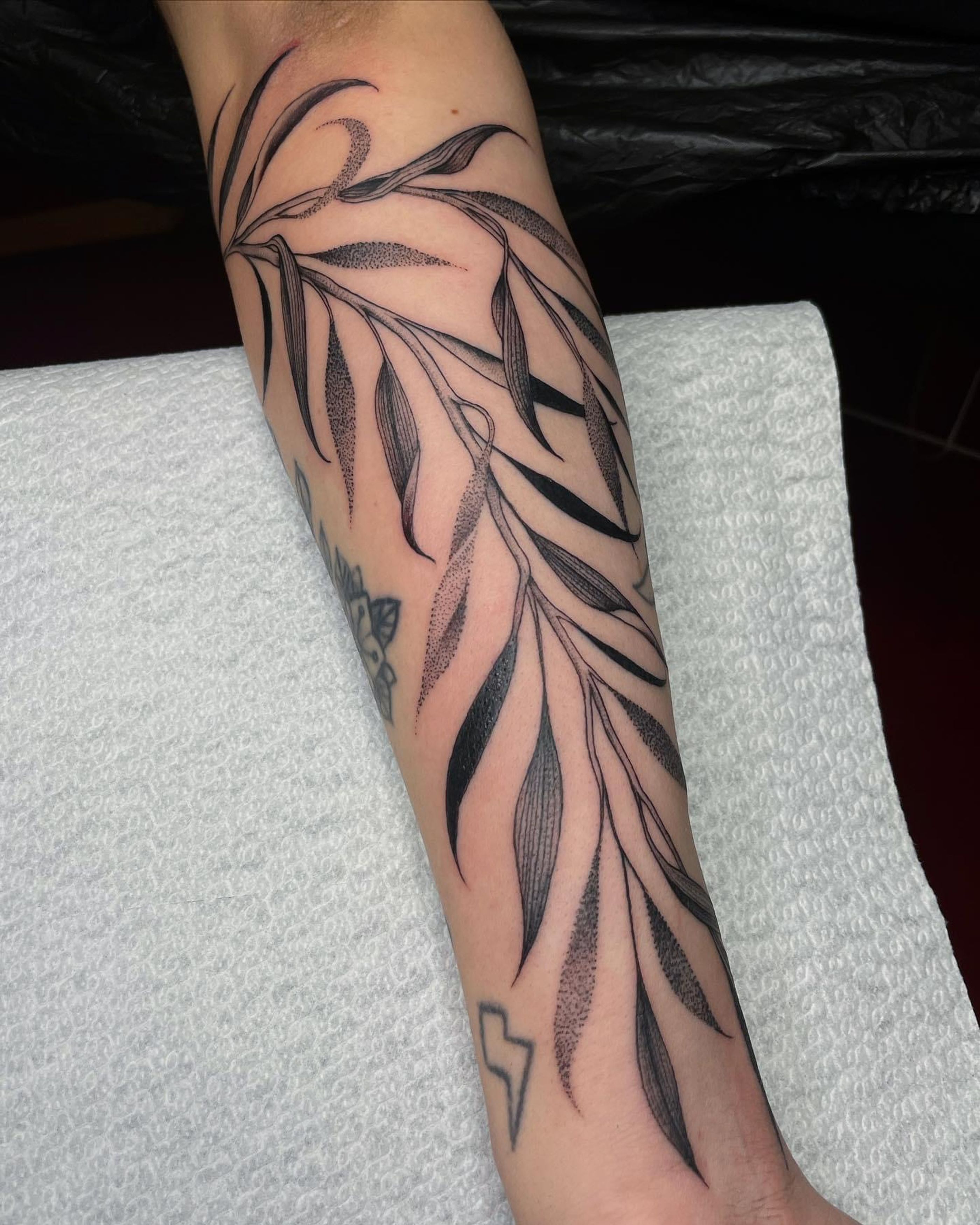 Elegant Dotwork Vine Branch Tattoo