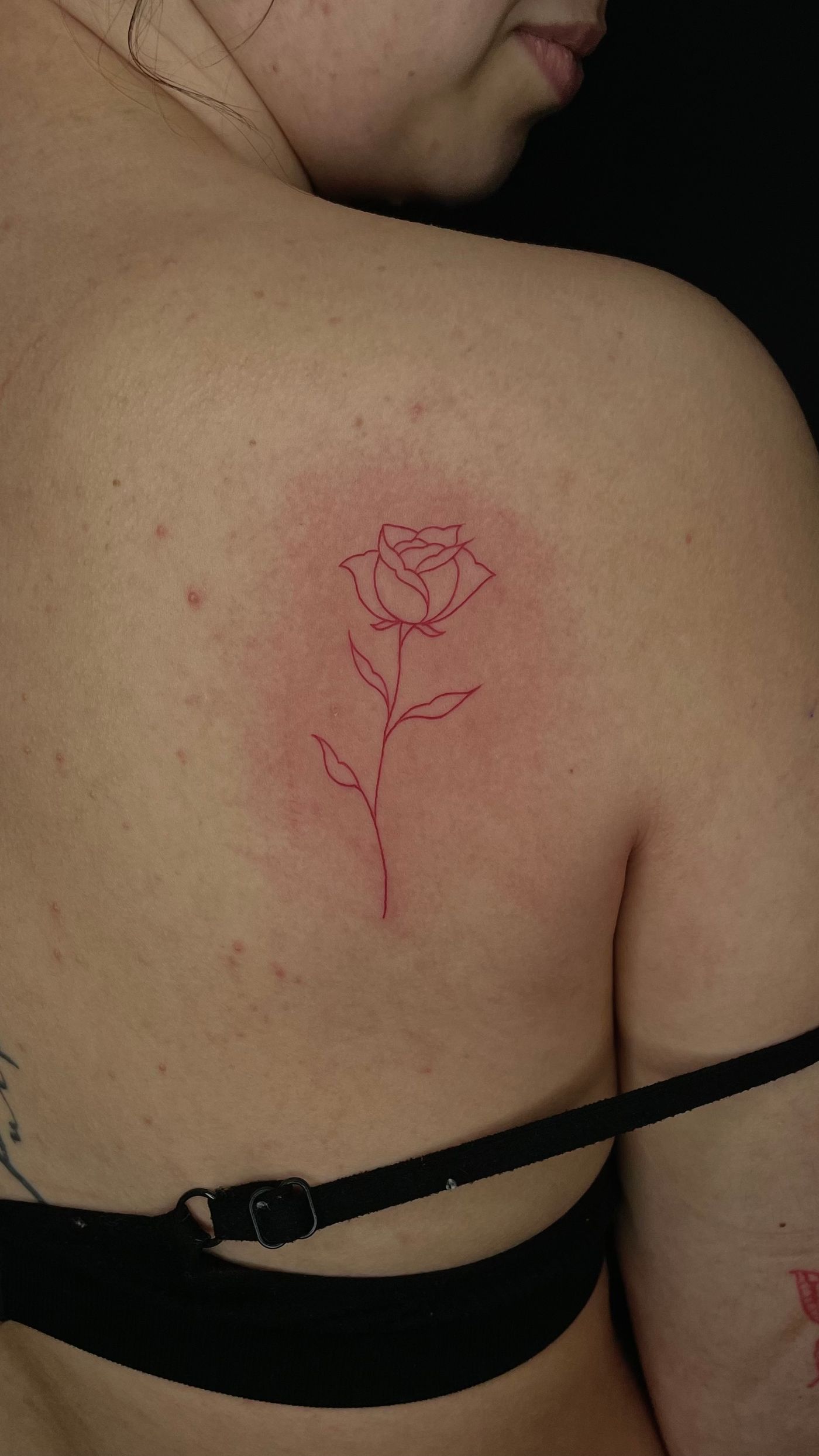 Red rose tattoo, rose fine line tattoo, femminine tattoo, fine line tattoo